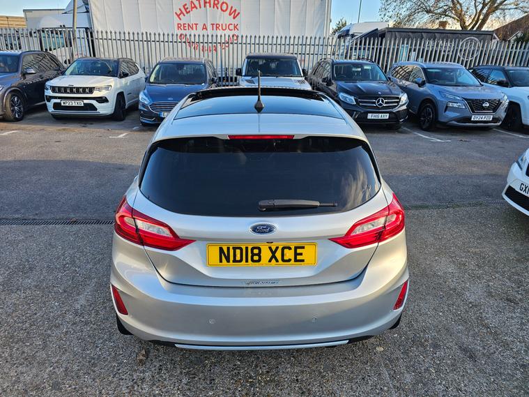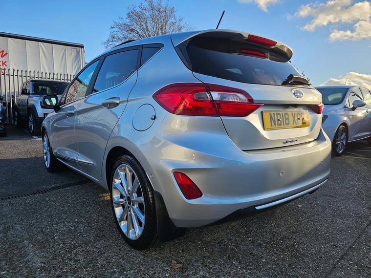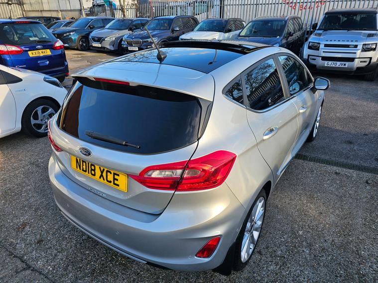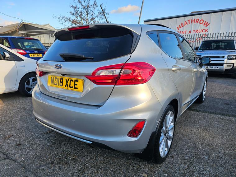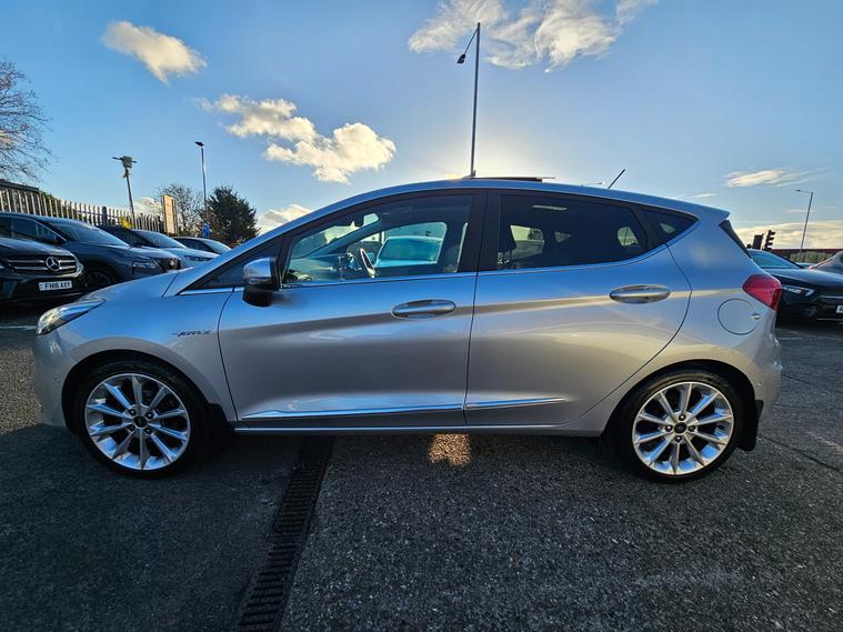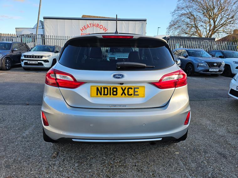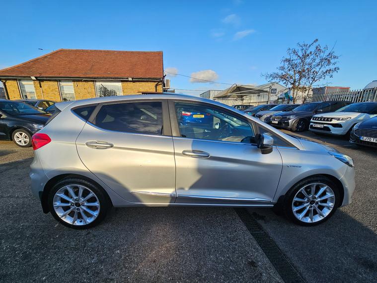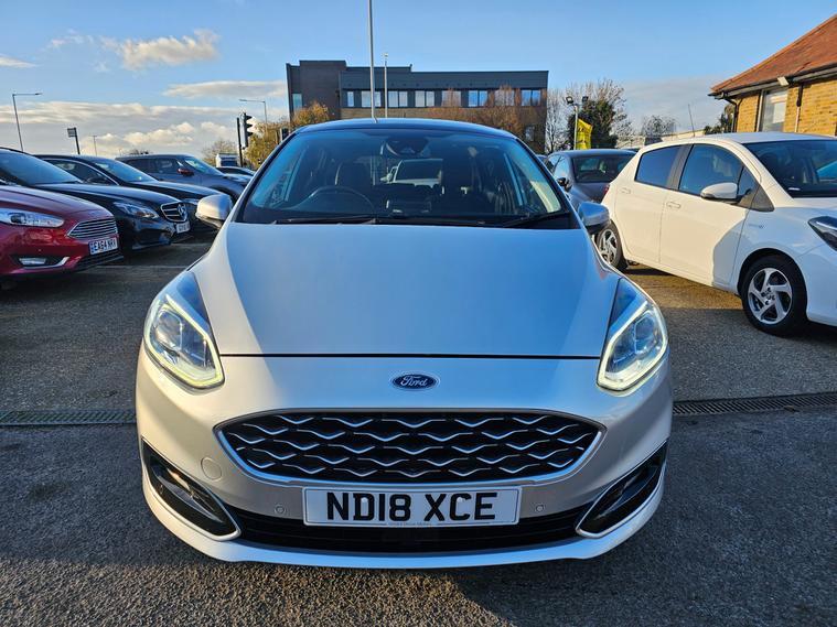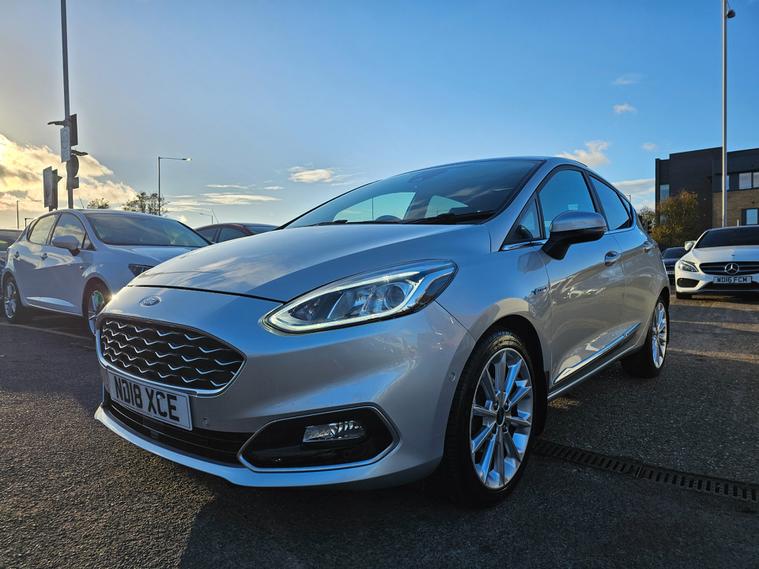 Only One Previous Owner, Offering Complementary Fresh Service, 2 Keys, Service History, HPI Clear, ULEZ Free. This 2018 British Ford Fiesta, with a mileage of 31601, is a ULEZ compliant, 5-door hatchback with a 1.0T EcoBoost Vignale petrol engine and a MOT expiry date of 10/08/2026. With 5 seats, it boasts a sleek design with 17-inch alloy wheels, chrome belt line finisher, and body-coloured door handles and electrically-operated and heated power-foldable door mirrors with integrated side indicators. The car also features electric rear windows, making for a comfortable and stylish driving experience.,