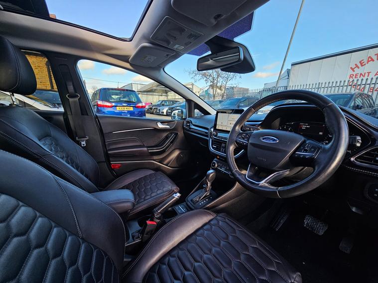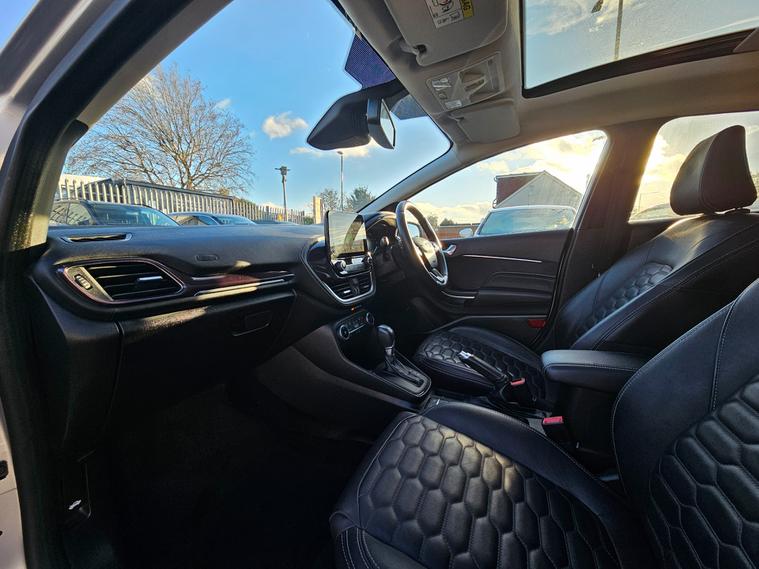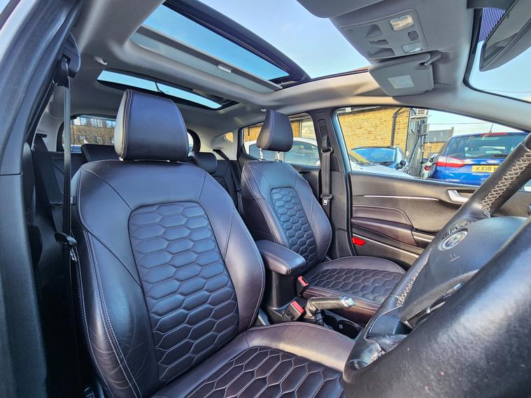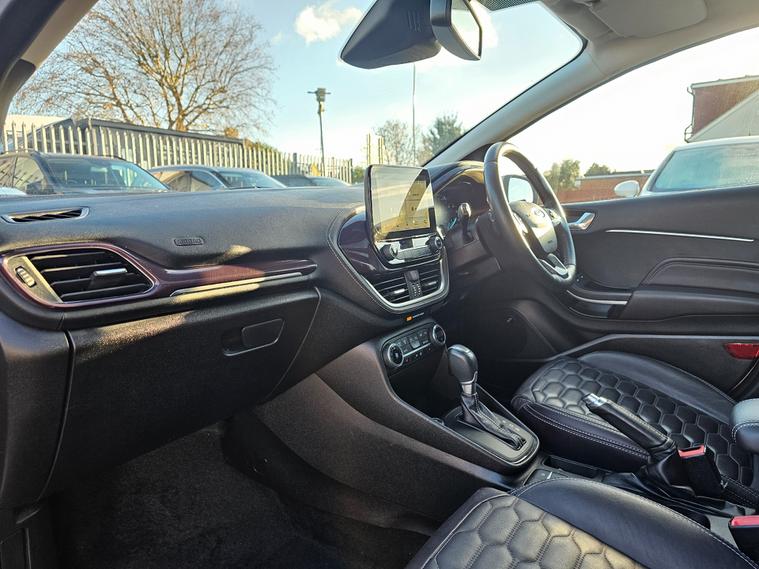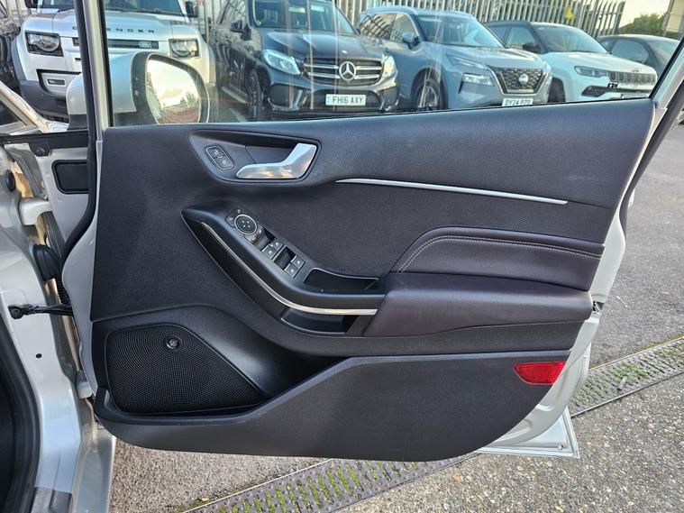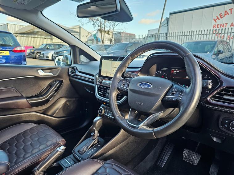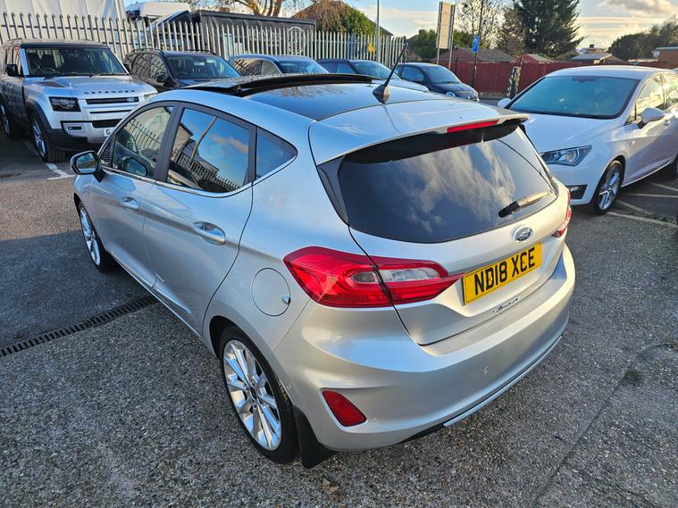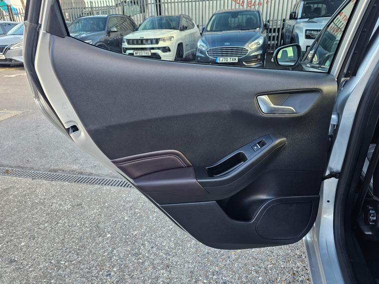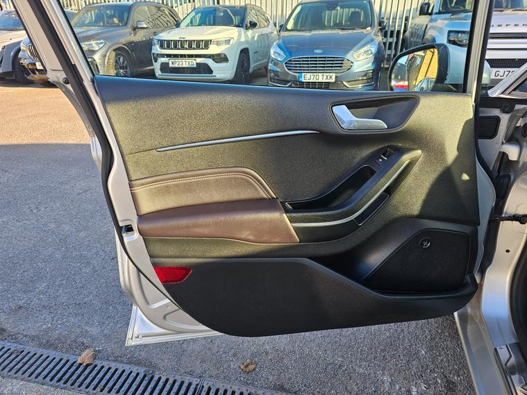 Only One Previous Owner, Offering Complementary Fresh Service, 2 Keys, Service History, HPI Clear, ULEZ Free. This 2018 British Ford Fiesta, with a mileage of 31601, is a ULEZ compliant, 5-door hatchback with a 1.0T EcoBoost Vignale petrol engine and a MOT expiry date of 10/08/2026. With 5 seats, it boasts a sleek design with 17-inch alloy wheels, chrome belt line finisher, and body-coloured door handles and electrically-operated and heated power-foldable door mirrors with integrated side indicators. The car also features electric rear windows, making for a comfortable and stylish driving experience.,