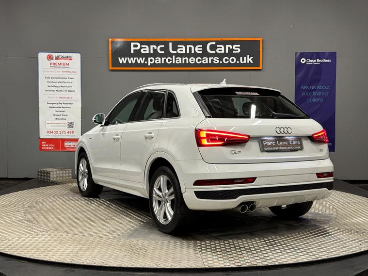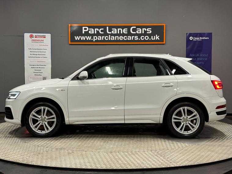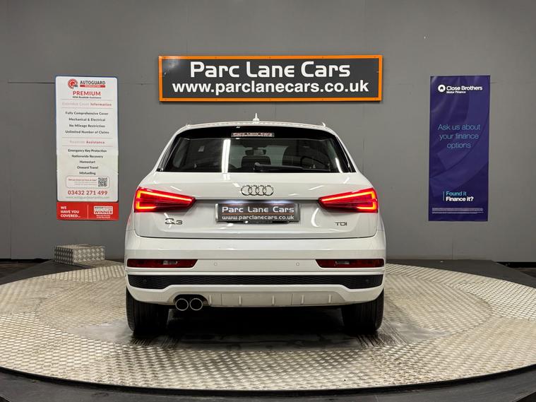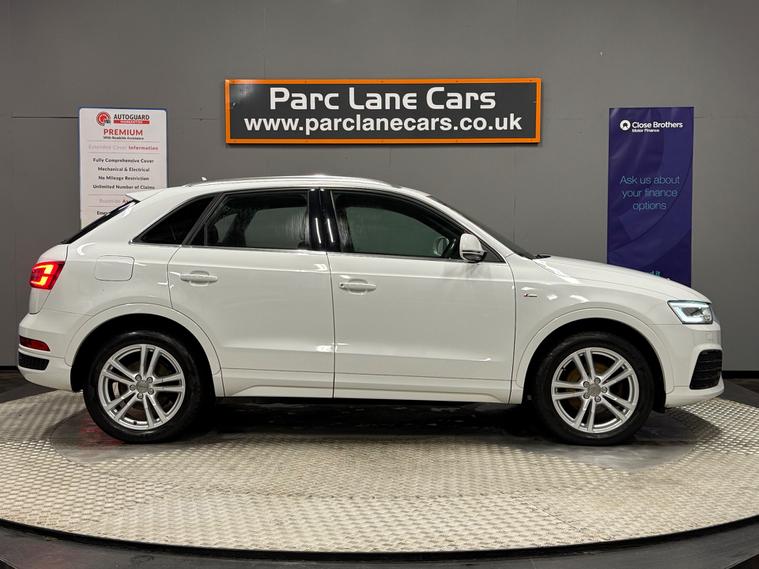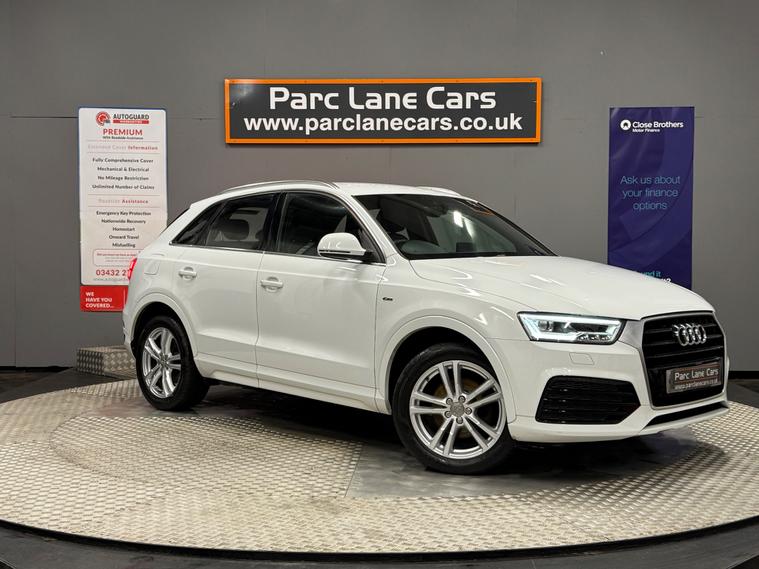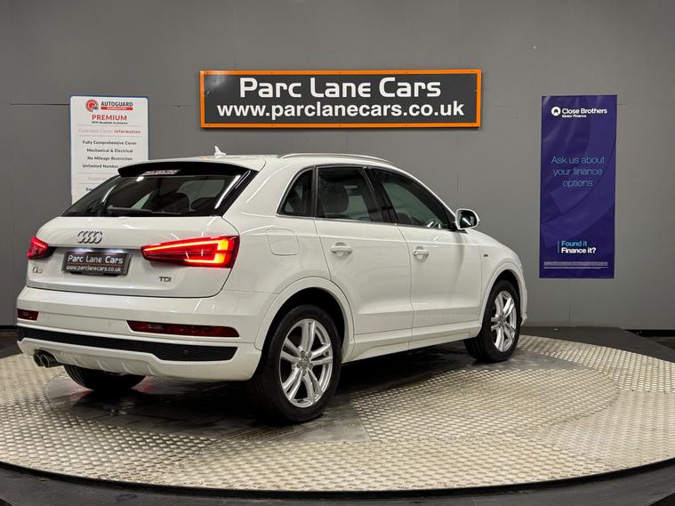 Parc Lane Cars of Gosforth proudly present this lovely Audi Q3 2.0 TDI S-Line, finished in Glacier White with black half leather/cloth upholstery. A stylish, practical and efficient SUV with excellent pedigree and the desirable S-Line styling pack.Mileage & Service HistoryThis Q3 has covered 78, 160 miles and comes with a strong service history, including a recent timing belt replacement, serviced at the following intervals: 31/07/2017 - 9, 398 miles 10/09/2019 - 25, 900 miles 20/12/2022 - 54, 019 miles 02/02/2023 - 54, 906 miles - Timing belt replaced 16/01/2024 - 62, 995 miles 29/04/2025 - 74, 683 milesSupplied with 2 remote keys.Factory Specification & Features 2.0 TDI diesel engine (150ps) 6-speed manual gearbox Satellite navigation Cruise control Bluetooth connectivity Radio / CD player Air conditioning Traction control S-Line styling package Half leather / cloth interiorVehicle HighlightsThis Audi Q3 S-Line is a lovely, well-kept example, offering a perfect combination of style, efficiency and comfort. With its recent timing belt replacement, strong service record and desirable specification, it represents superb value.Certainly not to be missed.Key DetailsMileage: 78, 160 milesTransmission: ManualFuel Type: DieselModel: Audi Q3 2.0 TDI S-LineEngine: 2.0 TDI (150ps) Euro 6Colour: Glacier WhiteInterior: Black half leather/clothKeys: 2 remote keysLocation: Parc Lane Cars, GosforthFinance & Part ExchangeFinance is available, and part exchange is welcome.Contact Parc Lane Cars Gosforth today to arrange a viewing or test drive.Listed specification shown as accurately as possible. Errors may occur. Please confirm details before purchase.REG NO: SG16 ZMD