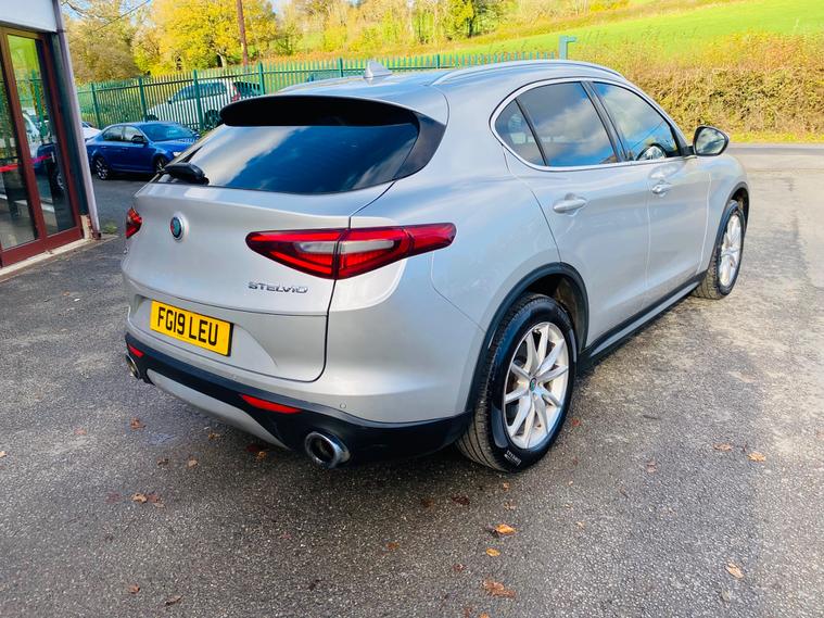 This 2019 Alfa Romeo Stelvio 2.0T Speciale SUV with 59001 miles on the clock is a sleek and powerful petrol vehicle with ULEZ compliance, ensuring it can navigate urban areas with ease. With 5 seats and 5 doors, this SUV is spacious and practical, while the MOT valid until 14/11/2026 provides peace of mind for the future. The Euro 6 (s/s) engine delivers a punchy 280 ps, and the Q4 AWD system ensures excellent traction in all conditions. The striking Silverstone Grey exterior is complemented by Aluminium Roofbars and a Compact Spare Tyre, while the interior features plush Black Leather upholstery. Additional features such as a Rear Backup Camera add convenience and safety to every journey, making this Alfa Romeo Stelvio a stylish and reliable choice for any driver.- Good service history - MOT until November 2026- 2 keys - Finance available - Part exchange welcome ,
