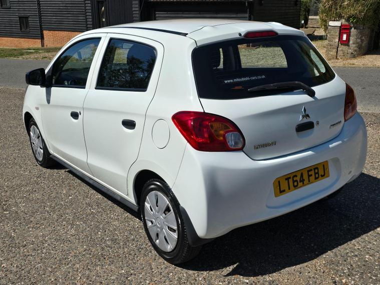 This is a lovely low mileage example. Low miles with Service History with 6 stamps in the book. Will come serviced. No advisories on current mot. Free 12 Months AA Breakdown cover. 2 Keys. HPI Clear! The Mirage is designed for efficiency, achieving an impressive 67 miles per gallon and producing low CO2 emissions and an annual road tax at Just £20. These figures indicate that this vehicle is more economical to run and better for the environment compared to many other cars in its class. Part exchange and finance options available.