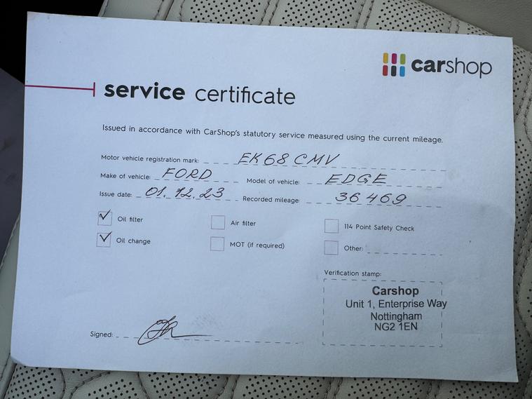 This 2018 Ford Edge 2.0 TDCi Vignale SUV with 69362 miles on it is a Diesel-powered, 5-door, 5-seat vehicle that is ULEZ compliant and has its MOT expiring on 20/08/2026. With a sleek, SUV design, this car also boasts 20in Alloy Wheels, Acoustic Side Glass, Bodyside Cladding with Chrome Strip, and Chrome Roof Rails, giving it a stylish and sporty look. Its Euro 6 (s/s) engine produces 210 ps, providing a powerful and smooth ride. Perfect for both city and off-road driving, this car is ready for any dealer's website delivery available.Part exchange welcome.AA extended warranty partner.AA standards approved dealership.Trading standards approved dealership.Autotrader highly rated dealership.