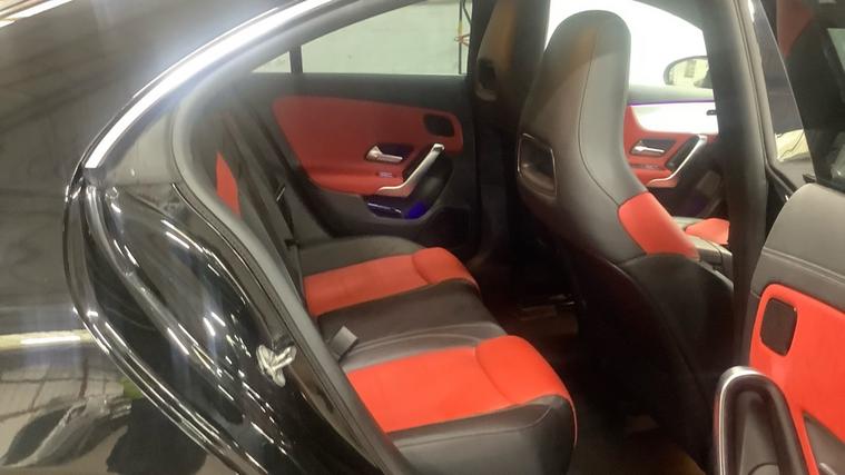 VAT QUALIFYING, 2 KEYS, ULEZ FREE, 1 OWNER FROM NEW, FRESH SERVICE (TOTAL 4 SERVICES), FRESH MOT, NAVIGATION, BLUETOOTH, METALIC PAINT COSMOS BLACK, LEATHER SEATS, RED AND BLACK COMBINATION LEATHER SEATS