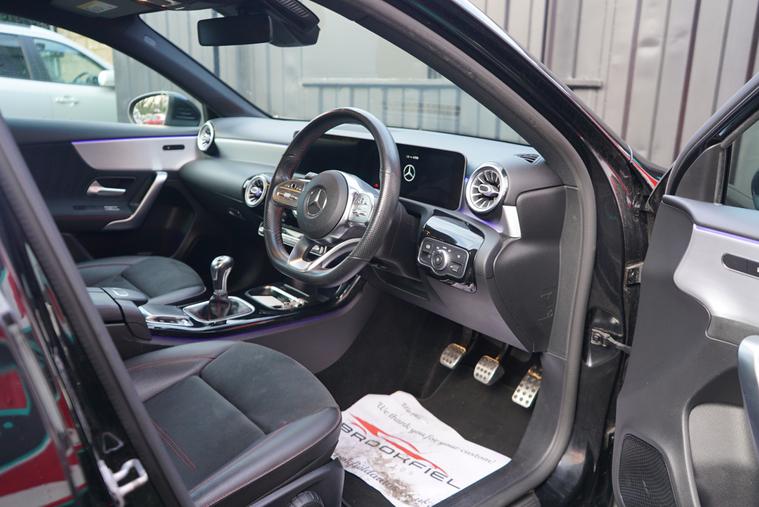 Brookfield Autos are delighted to present this immaculate 2019 Mercedes-Benz A Class A180 AMG Line Premium to Market, finished in the lovely Cosmos Black paintwork.Inside it features, Artico Leather-Dinamica Microfibre Interior with Red Stitching, Bluetooth, Digital Display, Ambient Lighting, Heated Seats, Sat-Nav, Cruise Control, Start/Stop Technology, Front & Rear Sensors, Parking Package with Reversing Camera, USB Type C plus more.It performs superbly; It's 1.3 litre petrol engine is smooth and quiet, with a fair amount of torque available on demand. This is a phenomenally well looked after example and has full service history, the last one being completed in November 2025, lovely throughout.Car comes with 12 Months MOT if due within 9 Months as well as 12 Month AA Breakdown Cover. All Vehicles come Professionally Valeted.Brookfield Autos accepts all part exchanges, offers Nationwide delivery and Finance Packages. To book your test drive please call us. This car comes with 3 months warranty, can be upgraded to 12 months for an additional £395.
