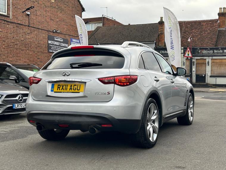 This 2011 Infiniti FX 3.0 30d V6 GT SUV with 59500 miles on the clock is a powerful Diesel SUV with MOT expiring on 09/08/2026. It boasts 5 seats and 5 doors, making it perfect for families or those needing extra space. With a Euro 5 engine producing 238 ps, this automatic 4WD vehicle is reliable and efficient. Its 20in Alloy Wheels and Electric Glass Sunroof add a touch of luxury, while features such as Body Colour Heated and Electrically Folding Door Mirrors and Tilt While Reversing Door Mirrors ensure convenience and safety. This high-quality SUV is a stylish and practical choice for any driver. Comes with 12 month AA Roadside Assist and 3 Month Warranty for piece of mind.