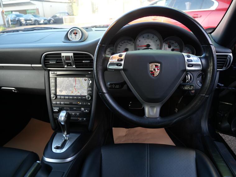 This stunning 2009 Porsche 997 Turbo is one of the final models to feature the legendary Mezger enginethe same power unit derived from the twin-turbo 911 GT1 Le Mans race car and shared with the GT3 models. Known for its performance, reliability, and motorsport pedigree, it makes this example highly desirable.Finished in Basalt Black Metallic with matching black Turbo alloy wheels and all-red rear lights, the car looks every bit as special as its specification suggests.Inside, you'll find a beautifully presented full black leather interior with an excellent options list, including:Tiptronic transmissionSport Chrono Package (with dash-mounted chronograph and Sport mode)PCM with satellite navigationBose Sound PackageBluetooth phone connectivity & voice controlCruise controlHeated seatsRear Park AssistSunroofMultifunction steering wheelFully electric seats with driver memoryAlcantara headliningLeather centre console with embossed ''Turbo'' scriptAutomatic wipers & auto-dimming rear-view mirrorStainless steel door sills12V socket in the passenger footwellThe Sport Chrono Package enhances throttle response and holds gears longer for a more dynamic driving experience, while PASM (Porsche Active Suspension Management) sharpens the suspension for improved handling.With just 29, 000 miles from new, the car is in outstanding condition throughout and comes with a full service history.This is a rare opportunity to own a low-mileage, Mezger-engined 997 Turbo in exceptional condition