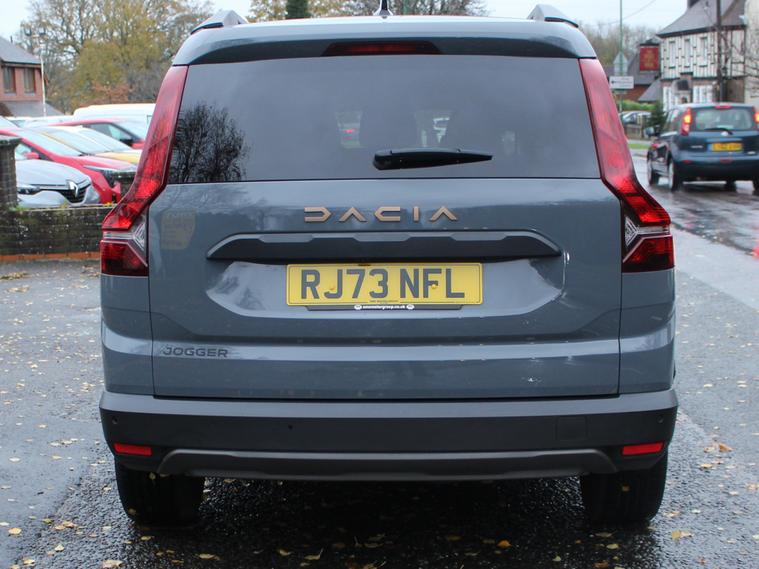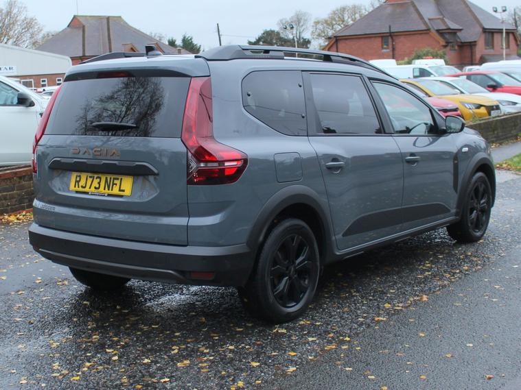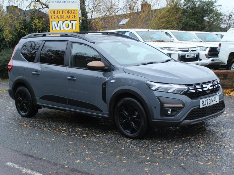 This 2023 Dacia Jogger 1.0 TCe EXTREME MPV with 31450 miles on the clock is a spacious and versatile family vehicle that is ULEZ compliant and will not require an MOT until 30/07/2026. Powered by a 1.0 litre petrol engine with a manual transmission, this 5-door MPV has 7 seats, making it an ideal choice for larger families or those needing extra space. It comes with desirable features such as a spare wheel, 16in alloy wheels, fabric interior in Colour Harmony - Titanium Black, and distinctive Copper Brown Dacia logo and deco parts. With its practicality, fuel efficiency and stylish design, this Dacia Jogger is the perfect choice for those in need of a reliable and spacious family vehicle for their day-to-day needs., OPEN 7 DAYS A WEEK - A SELECTION OF UP TO 200 CARS AND VANS AVAILABLE. Click on dealer 'VISIT WEBSITE' link for many more large photographs of this car. We are a West Sussex Trading Standards Approved 'Buy with Confidence Dealership'.