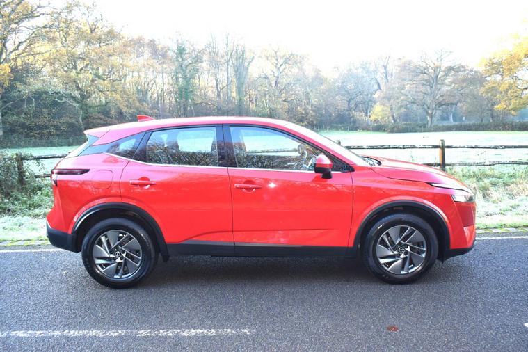 This 2022 Nissan Qashqai DIG-T Acenta Premium is a superb example, having had only one owner since new. This Euro 6 compliant 1.3 litre petrol hybrid model offers a smooth and efficient driving experience. It comes equipped with a range of intelligent features designed to enhance your journey, including Intelligent Cruise Control for effortless motorway driving, Blind Spot Warning to help you change lanes safely, and automatic Dusk Sensors that activate the headlights when needed. Parking is made simpler with the Rear View Camera, and you can enjoy seamless connectivity through Bluetooth with Audio Streaming.The Qashqai Acenta Premium stands out with its impressive acceleration, reaching 0-62mph in just 9.2 seconds, demonstrating its responsive performance. This vehicle also boasts a generous boot space, offering ample room for shopping or luggage, making it a practical choice for families and everyday use. Furthermore, its low insurance group rating indicates that running costs are kept to a minimum, providing excellent value compared to similar vehicles.Finished in Red with cloth interior, one owner from new, rear parking sensors, 17'' alloy wheels, keyless entry, keyless start, electric folding mirrors, paddle shifts, air con,