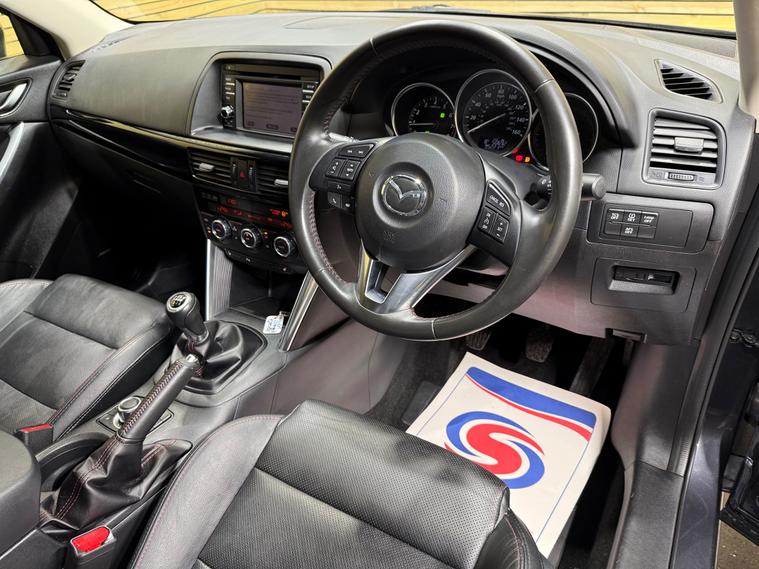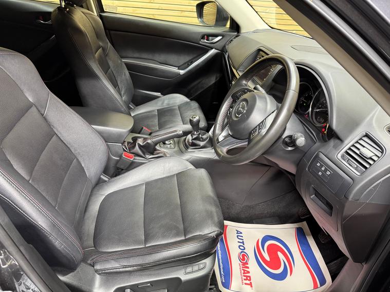 This Mazda CX5 2.0 petrol has only 1 former keeper and comes with 9 service records , New Service and MOT , 2 keys Very nice spec including Satellite Navigation , Heated Black Leather Trim , Bose Audio , Bluetooth Connectivity , Reverse Camera , Cruise Control , Factory Tinted Windows , xenon's , 19'' alloys , Front and Rear parking sensors Junction 21 Motors Ltd is a family-run business with over 15 years of experience in the motor trade. We are an AA Approved Garage, conveniently located at Rolstone Farm, just half a mile from M5 Junction 21. FCA Registered - working with a wide panel of trusted finance providers Part Exchange Welcome All Viewings by Appointment Only (fees may apply) Opening Hours: Monday - Friday: 9:30am - 6:00pm Saturday: 10:00am - 5:00pm Sunday: Hours vary (please call to confirm) Call us on 01934602947 Visit our website for directions and to browse our latest stock.