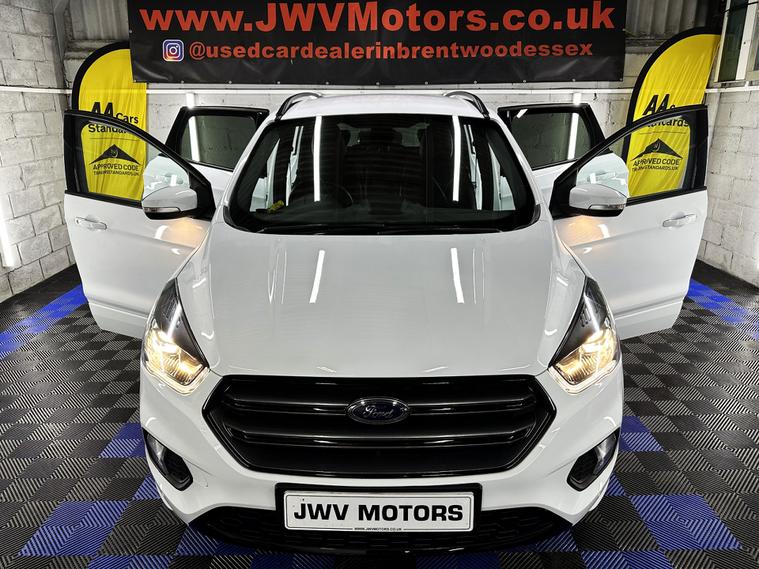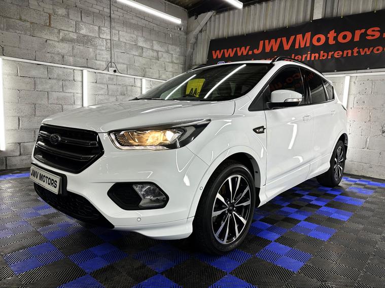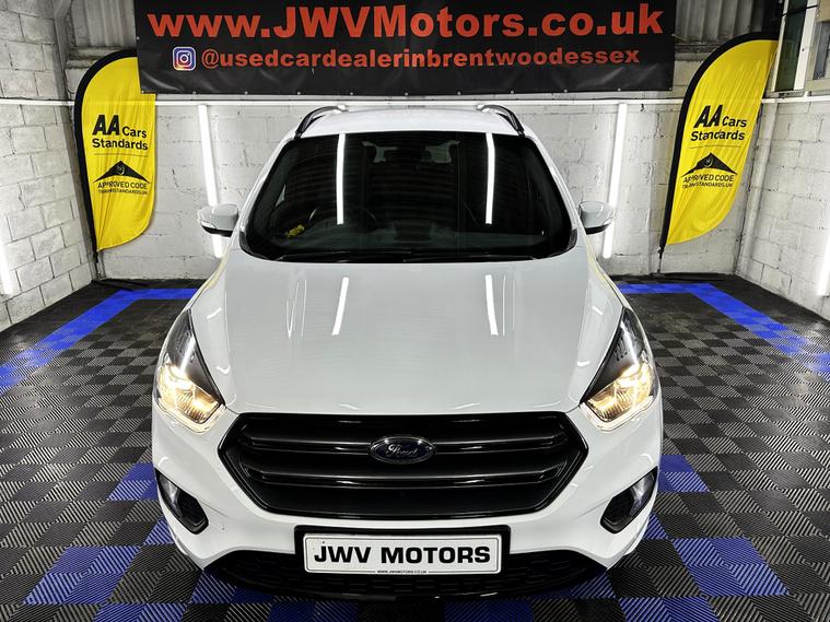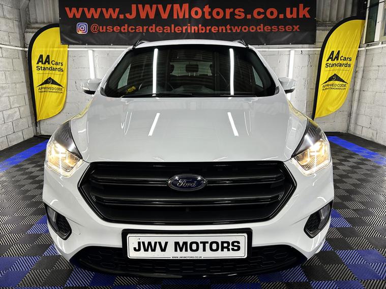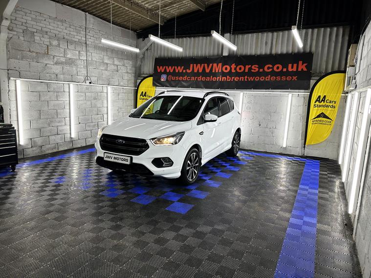 Stunning example of a Ford Kuga ST-Line TDCI with just 2 owners from new, which is in excellent condition inside and out for its age and mileage. Ulez compliant, Excellent running costs and excellent mpg for an SUV. Service history comprising of 7 stamps in book with a new service just completed. This car comes complete with our best 3 months comprehensive warranty, visit our website for full terms and conditions, for that extra peace of mind. HPI clear. Professionally valeted and detailed inside and out giving you the highest quality a car dealer can offer. The perfect new used car feeling. 2 x remote central locking key fobs. Part exchange welcome. This car is ready to drive away today. Appointments only giving you the customer our full attention, call today to arrange a viewing. All credit and debit cards accepted including American express. If you are looking for finance we work with a number of brokers to help find you the best deal. If you choose to finance your car with JWV Motors we will give you something back in return, up to months warranty with no admin fee. Unfortunately if you decide to choose an outsourced finance provider there will be an admin, this will vary depending on the company charges. If this car is not suitable for your needs you can visit all of our current stock on our website dealer's website Why choose JWV Motors? Why not look at our reviews before making any decisions. Thank you for your time. SALE YOUR CAR THROUGH OUR SALE OR RETURN POLICY. INTERESTED PLEASE CALL FOR DETAILS.