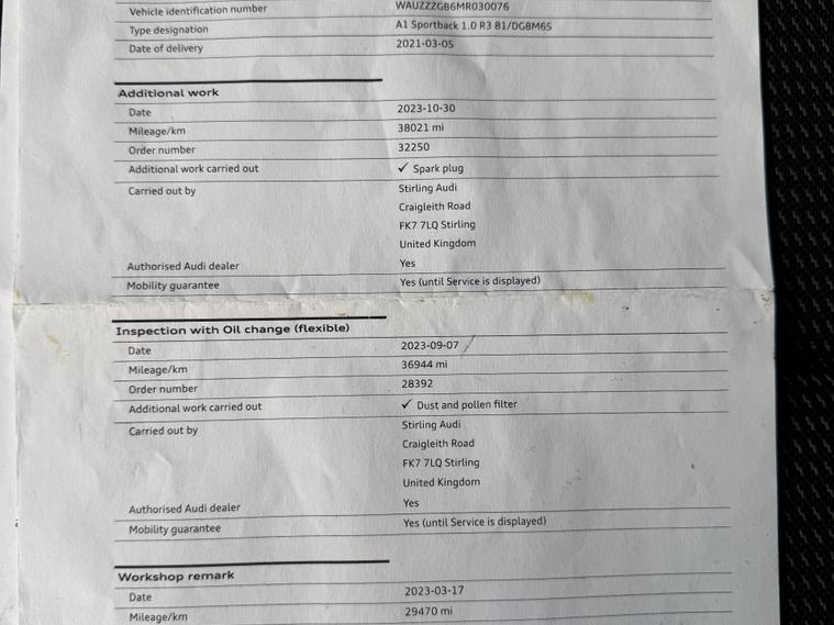 This 2021 Audi A1 1.0 TFSI 30 S line Sportback 5dr with just 61400 miles on it is a sleek hatchback with a petrol engine that is ULEZ compliant. With its MOT expiring on 09/12/2026, this 5-seater, 5-door car is ready to hit the road. Packed with features like 1 x SDXC Card Reader, 2 USB-C Connection Points, 6 Passive Loud Speakers, Audi Connect Safety and Service - e-call, and Audi Smartphone Interface, this Euro 6 (s/s) (110 ps) vehicle has everything you need for a smooth and enjoyable ride. Whether you're cruising around the city or embarking on a long journey, this Audi A1 offers both style and dealer's website delivery available.Part exchange welcome.AA extended warranty partner.AA standards approved dealership.Trading standards approved dealership.Autotrader highly rated dealership.