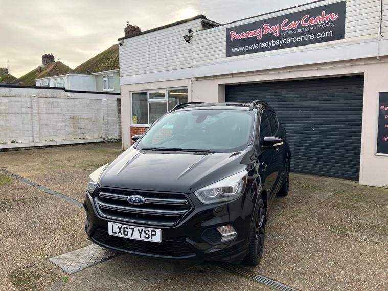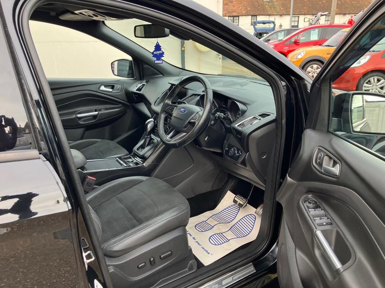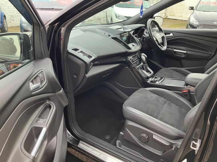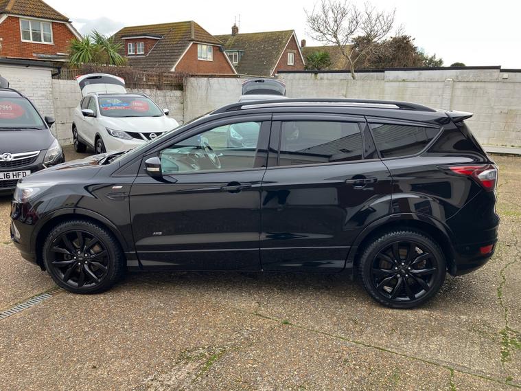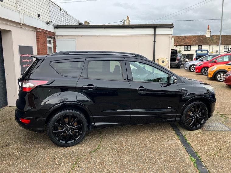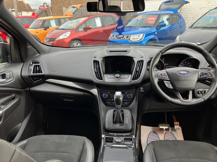 Ford Kuga ST-Line X TDCi [180] 5 Dr Auto [6] in Black with 79, 950 miles from new. One of Fords most popular models, this example is splendid throughout. Large inside, well equipped hosting many features. and a high trim level with desirable extras like LED headlights, panoramic sunroof, power tailgate, heated seats, and navigation, often paired with an automatic transmission and Ford's SYNC 3 system for connectivity. It offers enhanced styling with black accents and 19-inch wheels, plus advanced tech like Active Park Assist, making it a popular, feature-rich choice in the used market. Smart , well appointed this is a safe and sound option for families looking for a SUV that is not only extremely good looking but also a lovely vehicle to drive. Relatively inexpensive to run this Kuga is true value-for-money at only £11, 995,