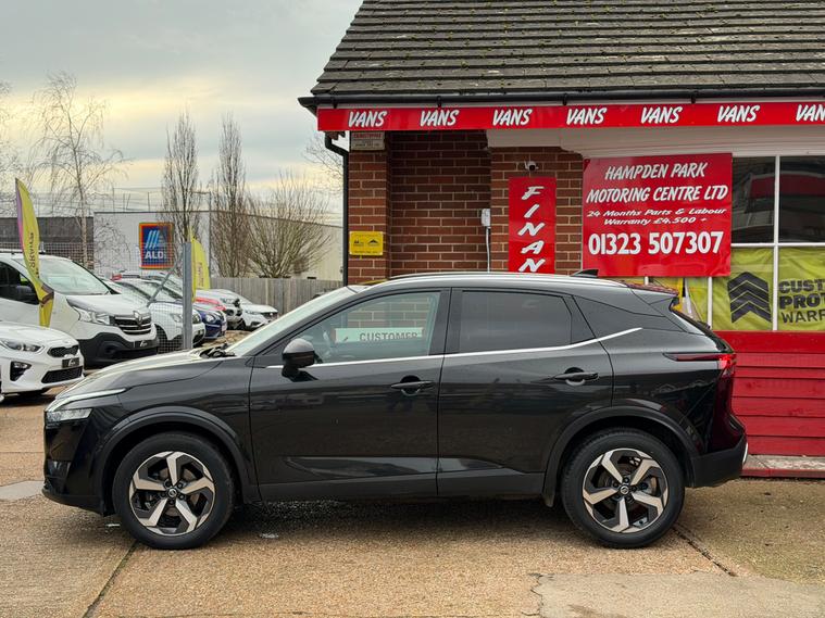 **24 MONTHS PARTS & LABOUR PEACE OF MIND NATIONAL WARRANTY INCLUDED IN THE PRICE**Hampden Park Motoring Centre is pleased to be offering this ULEZ compliant 2021 Nissan Qashqai1.3 DIG-T MHEV N-Connecta SUVfor sale, with ONLY ONE OWNER FROM NEW and 27, 100 miles. This car comes with COMPREHENSIVE HISTORY. The car will leave with an interim service, a new MOT and a PDI. Finished in Pearl black metallicwith dark grey cloth trim.Hop into the Qashqai's driving seat and it'll feel quite a bit like the old model, in the best possible way. You sit nice and high off the road with plenty of adjustment in the seat to suit your preferred position. It also carries over a very similar steering wheel, which we think is one of the best you can find in a modern SUV. Handily, the in-built maps software just runs on Google Maps - something a lot of us use on a daily basis. If you thought that was cool, why not give 'Hey Google' a go where you can ask it to change the cabin temperature and other hands-free tasks. As you look down the centre console, you'll notice actual physical switches and buttons - a rarity in today's car design, but something we applaud Nissan for keeping. Unlike some of its rivals, it doesn't pretend to be a sports car either and instead really leans into what a family car should be: comfortable. Light steering controls and a lovely ride is exactly what you'd hope for. It's not the plushest SUV on the market but for the price, it's hard to beat. **WHY BUYFROM US****Established In 1980****24 Month Warranty OnAll Cars Over £4500, &Those Not Covered By A Manufactures Warranty****All Our Cars AreHpi ClearSo You Can Buy WithConfidence****Competitive FinanceRates Subject To Status****Multi Branches****Open 7 Days a Week Inc Bank Holidays****Monday - Friday - 8.30amto 6pm****Saturday - 9.00am to 5pm****Sunday - 10am to 4pm****Bank holidays 10am to 4pm**For more pictures and a walk around videopleasego to https:/ dealer's website call to arrange viewing and a test drive on 01323300238.Here at Hampden Park Motoring Centre, we have up to 50 carson show, also at our Hailsham branch we have up to 50 further cars available for viewing, please call 01323300238 for more info.For more information on our Qashqai please see the benefits below as stated,