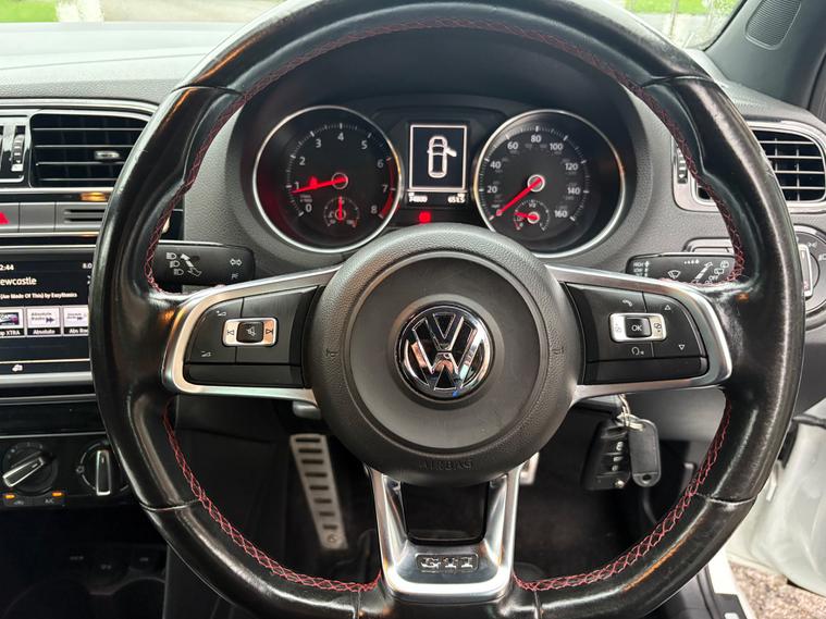 This 2015 Volkswagen Polo 1.8 TSI BlueMotion Tech GTI Hatchback with a mileage of 74000 is the perfect mix of practicality and performance. Powered by a petrol engine and a manual transmission, this 5-door hatchback comfortably seats 5 people and is ULEZ compliant. With an MOT valid until 13/02/2026, you can have peace of mind knowing this car is roadworthy. The car comes equipped with modern features such as a 6.5-inch color touch screen, Bluetooth audio and phone connectivity, as well as an aux-in socket and a 12V socket in the center console. This sleek and sporty hatchback is sure to turn heads with its stylish design and German engineering, making it the perfect choice for those looking for a reliable and practical car with a touch of performance.,
