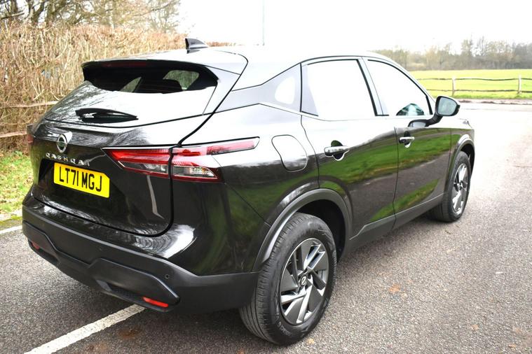 Finished in Black with cloth interior, one owner from new, rear parking sensors, 17'' alloy wheels, privacy glass, automatic, keyless entry, keyless start, air con, electric folding mirrors, LDW - lane departure warning, eco start/stop function, cruise control, reverse camera with guidelines, Bluetooth, DAB radio, Nissan Connect, HPI clear, finance available with this vehicle....for further information please contact us on 01483334205. This 2021 Nissan Qashqai DIG-T Acenta Premium is a superb example, having been owned by just one careful keeper. This Euro 6 compliant 1.3 litre petrol hybrid model offers a refined driving experience, complemented by a generous boot space perfect for all your needs. Inside, you'll find the Acenta Premium trim level equipped with practical features such as rear parking sensors to aid manoeuvring, and blind spot warning to enhance safety on the road.Enjoy a comfortable journey with the automatic dual zone climate control, ensuring the perfect temperature for everyone. Connectivity is seamless thanks to Android Auto and Apple CarPlay integration, allowing you to access your favourite apps and music. The intelligent auto headlights adjust automatically, providing optimal visibility without you needing to intervene. This Qashqai also benefits from a low insurance group, making it an economical choice for many drivers, and its features collectively demonstrate its superior offering compared to other vehicles in its class.