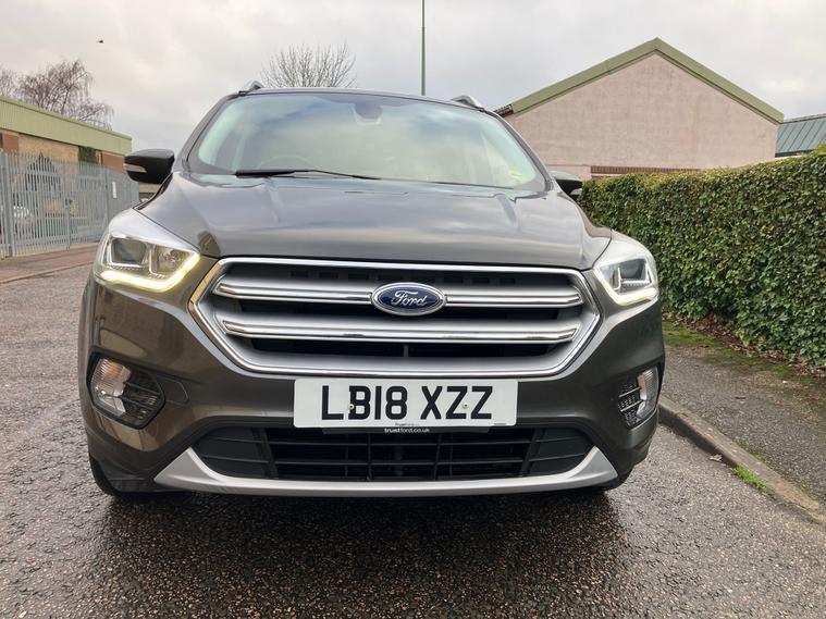 FULL SERVICE HISTORY TITANIUM HIGH SPEC MODEL 2018 Ford Kuga 1.5T EcoBoost Titanium SUV with just 54000 miles on the clock. This 5-door, 5-seater petrol vehicle comes with a manual transmission and is ULEZ compliant, making it an ideal choice for city driving. It also WILL HAVE NEW MOT, giving you peace of mind for years to come. The car is packed with features including a Ford DAB Navigation System with Ford SYNC3, SYNC3 with 8in Touchscreen DAB Audio System, and Audible Text Messaging with voice control and USB connectivity, ensuring a comfortable and connected driving experience. With its Euro 6 (s/s) engine producing 150 ps, this SUV is both powerful and efficient. Don't miss out on this top-quality, well-maintained vehicle. WARRANTY FREE AA BREAKDOWN COVER PLEASE PHONE BEFORE CALLING 01787902434