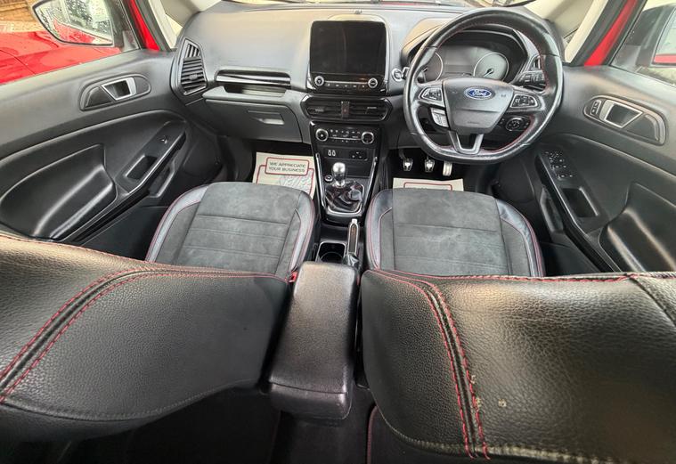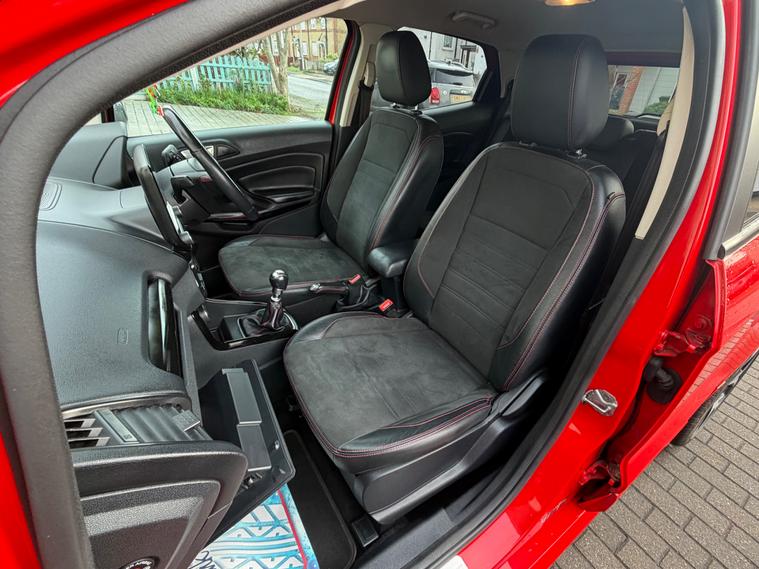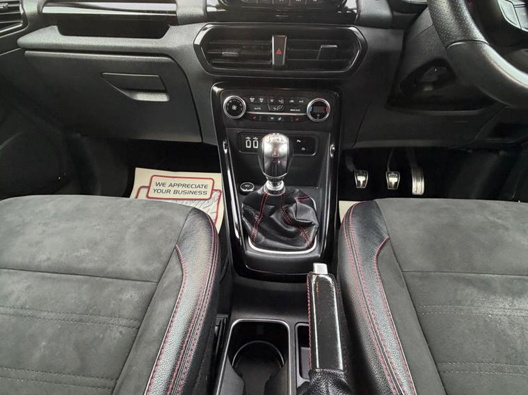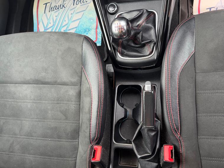 - gearshift knob - leather-trimmed with black insert and aluminium-finish ring and red stitching
