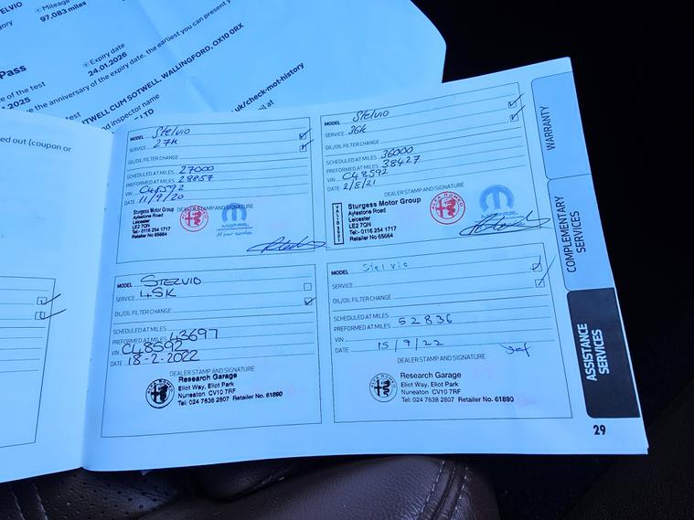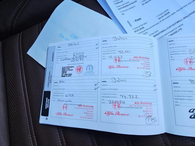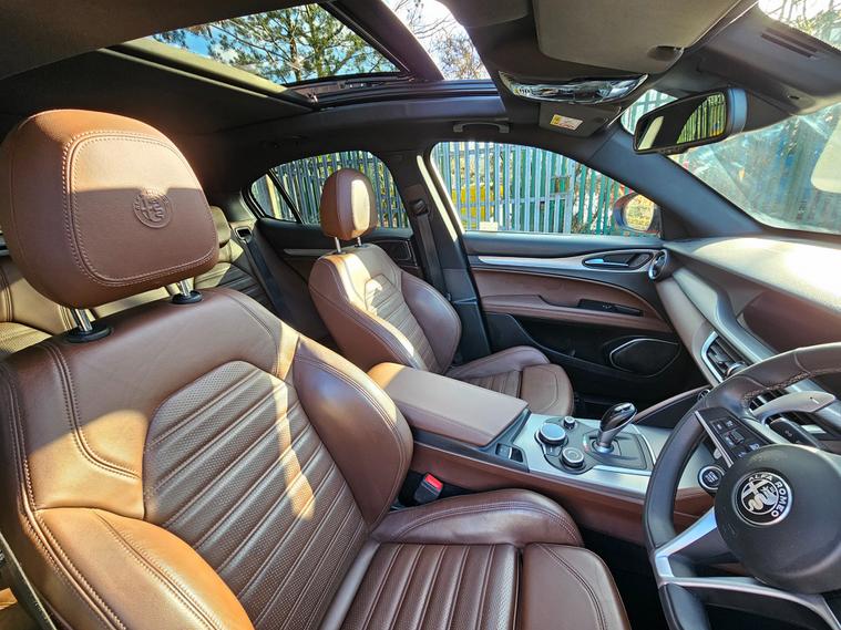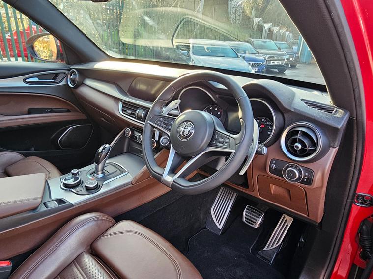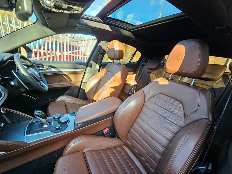 This 2019 Alfa Romeo Stelvio 2.0T Milano Edizione SUV with 112878 miles is a stylish and powerful SUV that runs on petrol. With 5 seats and 5 doors, this car is spacious and practical for the whole family. The Alfa Romeo Stelvio is ULEZ compliant, ensuring it meets environmental standards in urban areas. This SUV includes attractive features such as 20in alloy wheels, red brake calipers, black gloss roof rails, and a power express open-close sunroof. With its Euro 6 (s/s) engine delivering 280 ps, this Alfa Romeo Stelvio provides both style and performance in one stunning dealer's website delivery available.Part exchange welcome.Extended warranty options available.AA standards approved dealership.Trading standards approved dealership.Autotrader highly rated dealership.