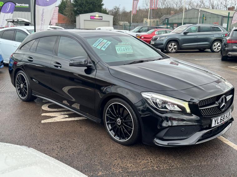 PARC LANE CARS OF GOSFORTH PRESENT THIS BEAUTIFUL MERCEDES BENZ CLA SHOOTING BRAKE AMG LINE NIGHT EDITION AUTOMATIC . FINISHED IN COSMOS BLACK METALLIC WITH STUNNING BLACK PARTIAL ARTICO LEATHER AND MICROFIBRE INTERIOR TRIM WITH RED STITCHING!THIS CLA HAS COVERED ONLY 74000 MILES AND COMES WITH A COMPREHENSIVE PRINTED SERVICE HISTORY.SUPPLIED WITH 2 REMOTE KEYS AND FITTED WITH £3000 OF THE FOLLOWING FACTORY EXTRAS;Metallic paintGarmin Map Pilot navigation system18'' AMG alloy wheels (4) ? multi-spoke design, painted high-gloss black with high-sheen rimMirror PackageHeated front seatsReversing camera8-inch colour displayBlack - Artico artificial leather/Dinamica microfibre with red contrast stitchingCosmos Black metallicLight Aluminium trim with longitudinal grainTHIS CAR IS SIMPLY STUNNING AND IS NOT TO BE MISSED!!FINANCE IS AVAILABLE AND PART EXCHANGE IS WELCOMEREG NO. YL68 HJN** LISTED SPECIFICATION IS SHOWN AS ACCURATELY AS POSSIBLE. ERRORS MAY OCCUR. PLEASE ASK US TO CLARIFY IF YOU HAVE ANY QUERIES. **