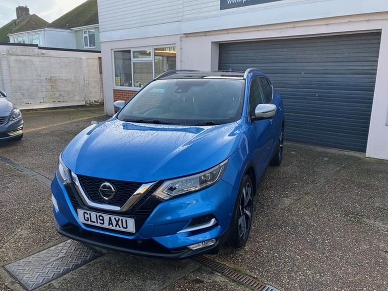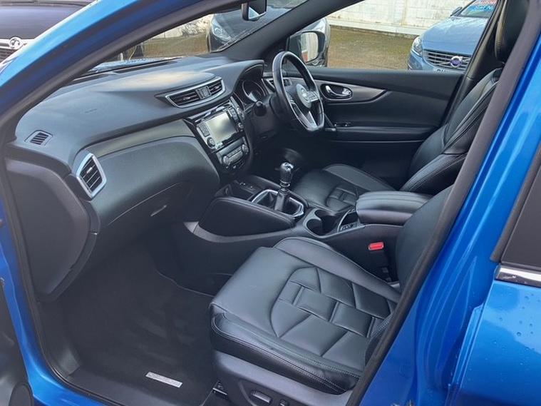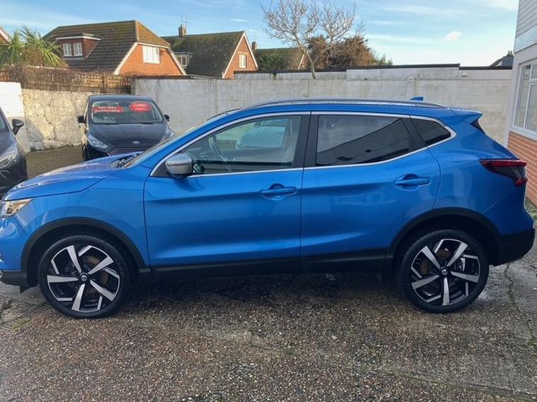 A One owner from new Nissan Qashqai 1.3 DIG-T Tekna+ SUV 5dr Petrol Manual Euro 6 (s/s) . Excellent example finished in lovely vibrant eye catching Vivid Blue with just 42, 381 miles . Striking good looks and a very plush interior with vast levels of equipment and entertainment featuring including Apple CarPlay preparation, Air con, Bluetooth, Nissan connect evo 7'' touchscreen navigation and entertainment system, Premium Nappa Leather seating, Infotainment Touchscreen system, with DAB radio, Rear view Parking Camera, Panoramic sunroof with one touch shade, and 19''Alloys. One of the most comfortable SUV'S in its class, Spacious and practical known for there reliability and popularity this one is sure to delight on every level. ,