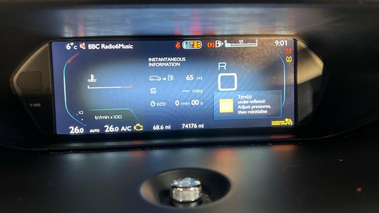 - gear selector stalk mounted on steering column and black gear selector paddles