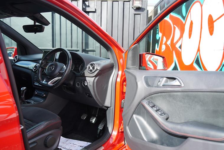 - door armrests with red contrasting topstitching