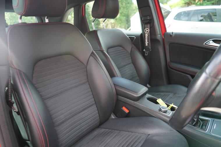 - centre armrest - front with storage and red contrasting topstitching