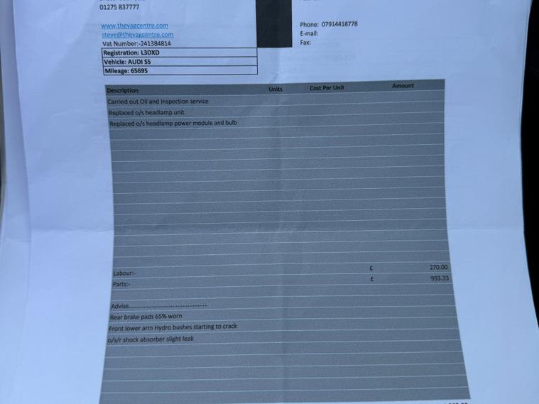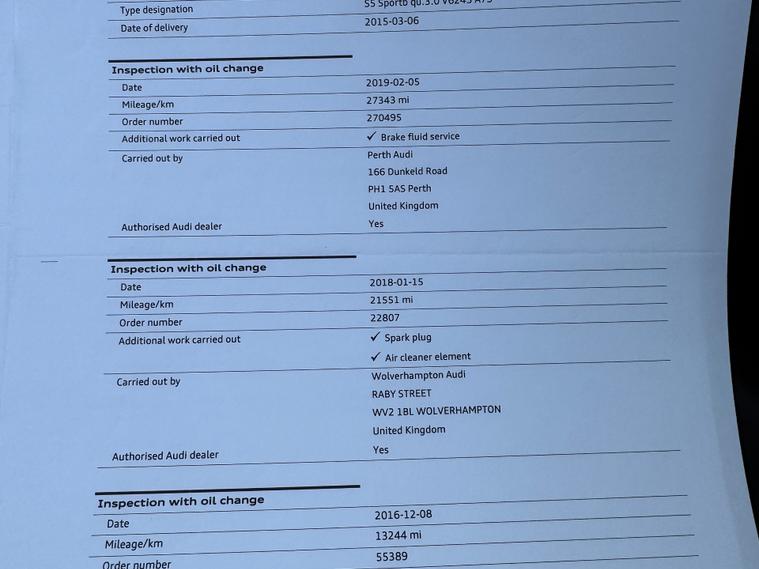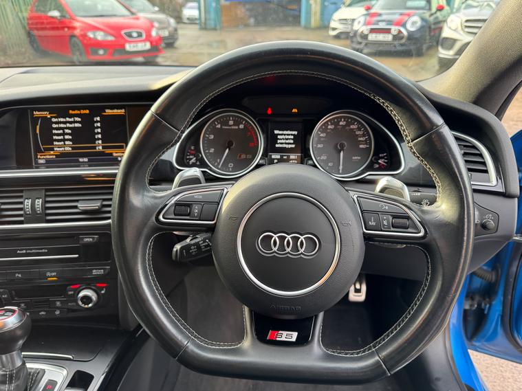 This 2015 Audi S5 3.0 TFSI V6 Black Edition Sportback 5dr Petrol S Tronic quattro Euro 6 (s/s) (333 ps) hatchback, with 66268 miles on the clock, is a sleek and stylish choice for those seeking a powerful ride. Its petrol engine is not only ULEZ compliant but also ensures a smooth and efficient drive, with an MOT that expires on 26/11/2026, giving you peace of mind for the road ahead. The 5-door car comfortably seats 4 with ample space for all, while including features such as 12V Power Socket, AMI - Audi Music Interface, Bang and Olufsen Sound System, DAB Digital Radio, and a 7in High Resolution Colour Display Screen, making it a luxurious and high-tech driving experience. Ideal for urban and long-distance travel, this Audi S5 is a standout choice for those looking for both performance and dealer's website delivery available.Part exchange welcome.AA extended warranty partner.AA standards approved dealership.Trading standards approved dealership.Autotrader highly related dealership.