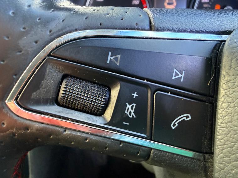 - steering wheel - flat-bottomed perforated leather with red stitching and fr logo