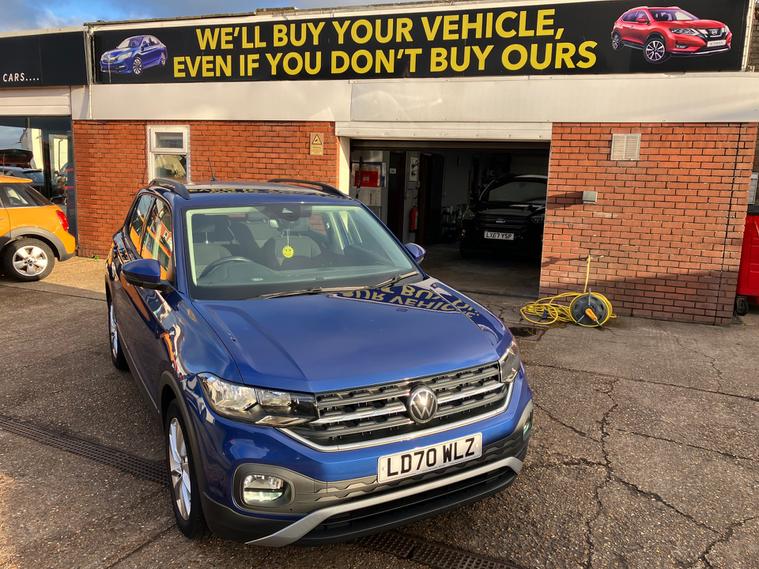 Volkswagen T-cross SE 1.0 TSi SUV Petrol 5 Dr Euro 6 (7) DSG Auto (s/s) (110 ps).Finished in Metallic Reef Blue , this One owner from new with only 30, 700 Miles is in splendid dealer's website petrol SUV with a 110 PS engine, 5 doors, a Euro 6 emissions rating, and a smooth 7-speed DSG automatic gearbox with start/stop (s/s), offering features like Apple CarPlay, DAB Radio, Air Con, Adaptive Cruise Control, : Bluetooth, Touchscreen Infotainment, USB dealer's website Air Conditioning, Electric Windows/Mirrors, Driver Alert System, Hill Start Assist, Multifunction Steering Wheel, 17-inch ''Clayton'' alloy wheels, body-coloured wing mirrors, and black roof rails .Split Folding Rear S and versatile storage with sliding rear seats, making it practical and tech-equipped for daily use. The T-Cross offers a versatile interior with significant boot space, especially with seats folded, and a sliding rear bench for flexible legroom or cargo capacity. Commended for its blend of style, practicality, and user-friendly technology, make it a good contender if your in the SUV market.,