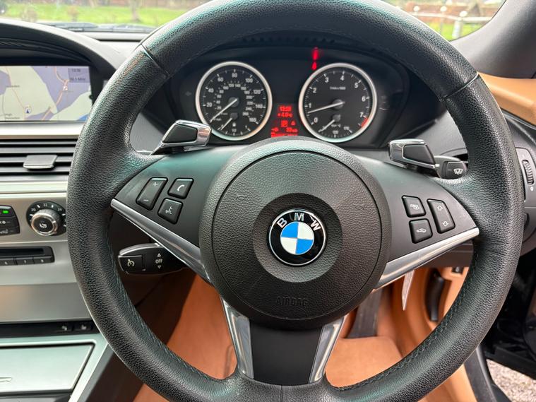 For sale is a 2009 BMW 6 Series 3.0 630i SE Coupe with only 49000 miles on the clock. This coupe runs on petrol and is ULEZ compliant, making it an environmentally friendly choice for city driving. The MOT is valid until 22/12/2026, giving you peace of mind. With 4 seats and 2 doors, this sleek vehicle offers a sporty driving experience. The Azurite Black exterior is complemented by electric folding & auto-dimming door mirrors, graduated tinted windscreen, adaptive headlights, and an anthracite headlining. This BMW 6 Series Coupe is a powerful option, boasting a Euro 4 engine with 272 ps. Perfect for those who value style and performance.,