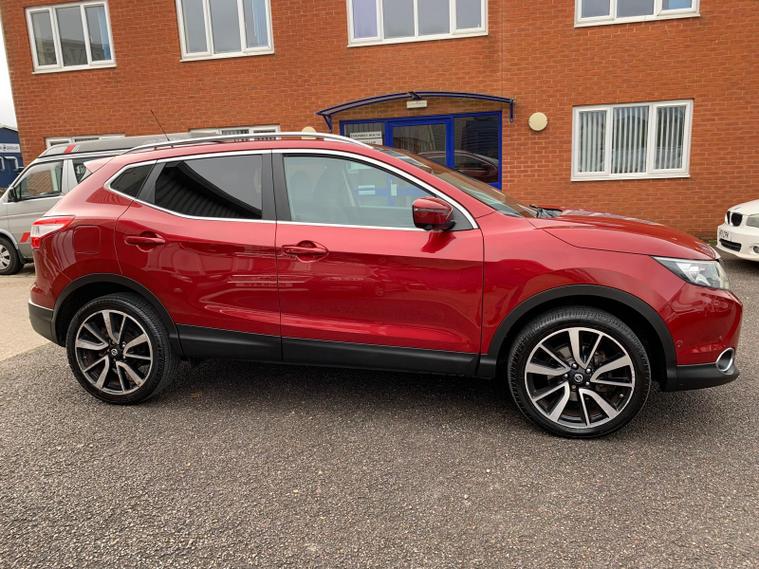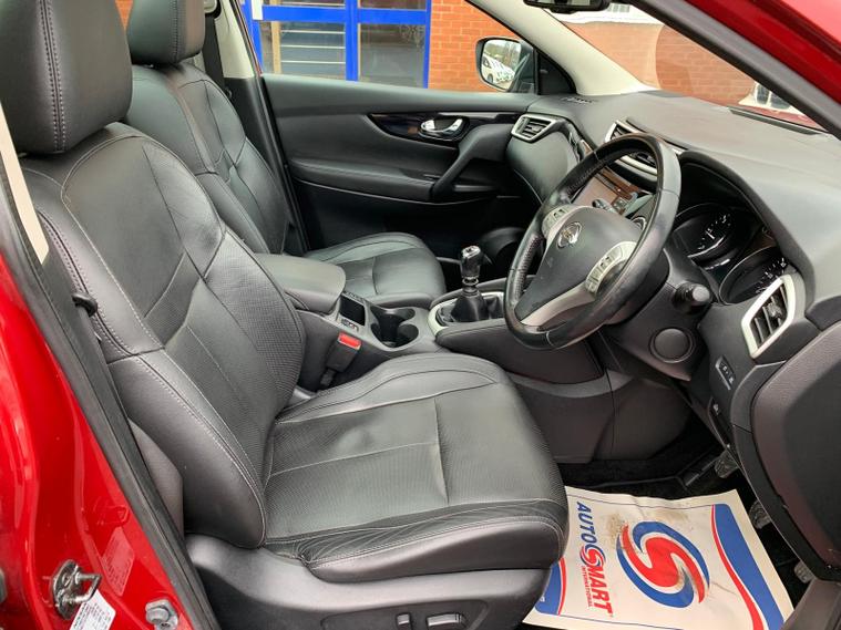 NISSAN QASHQAI 1.6 DCI TEKNA DIESEL MANUAL 4WD 5 DOOR FINISHED IN THE GREAT COLOUR COMBINATION OF MAGNETIC RED METALLIC BODYWORK WHICH SHINES LIKE THE DAY IT WAS FIRST REGISTERED AND GRAPHITE LEATHER INTERIOR IN FANTASTIC CONDITION THROUGHOUT!THIS TOP SPECIFICATION TEKNA EXAMPLE REALLY IS NOT TO BE CONFUSED WITH IT'S COMPETITORS WITH GREAT SPECIFICATION INCLUDING 360 DEGREE REVERSE CAMERA AND SO MUCH MORE AND UNRIVALLED CONDITION AND JUST 2 OWNERS FROM NEW! THE FIRST TO SEE WILL BUY!COMING WITH OUR SALES PACKAGE OF 10, 692, 20, 753, 31, 499, 37, 256, 44, 319, 61, 090 AND JUST SERVICED AT 65, 656 MILES!COMING WITH OUR SALES PACKAGE OF MOT TO 9TH DECEMBER 2026, JUST SERVICED AT 65, 656 MILES, 1 YEAR GUARANTEE, AA BREAKDOWN COVER, FULL INTERIOR AND EXTERIOR DETAILED VALET AND 2 KEYS ALL IN THE PRICE!