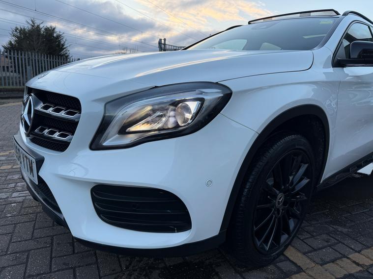 AA INSPECTED, ELECTRIC SEATS, ULEZ FREE, FRESH SERVICE, TOTAL OF 4 SERVICES (3 MAIN DEALER SERVICES), MOT DUE 05/12/2026, SATNAV, PARKING SENSORS, CLIMATE CONTROL, HALF LEATHER TRIM, TYRE INFLATION KIT, 19'' ALLOY WHEELS, PANORAMIC ROOF, PRIVACY GLASSThis 2018 Mercedes-Benz GLA200 AMG Line (Premium Plus) SUV is a sleek and stylish 5-door vehicle with 70750 miles on the clock. Powered by a 1.6 petrol engine, it is ULEZ compliant and comes with MOT until 05/12/2026. With 5 comfortable seats and a spacious interior, it is perfect for families or those who love to travel in style. The 19in Alloy Wheels and AMG Bodystyling give it a sporty edge, while the Beltline Strips in Chrome and Brake Calipers with Mercedes-Benz Lettering add a touch of luxury. The SUV also features AMG Bodystyling, front and rear apron trim, and comes in a Titanium Grey with High Sheen Finish. This Mercedes-Benz GLA is both practical and eye-catching, making it the perfect choice for those seeking a reliable yet sophisticated vehicle.