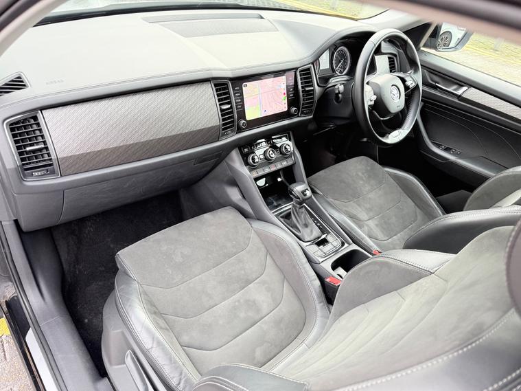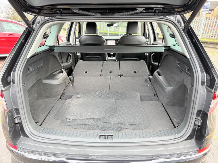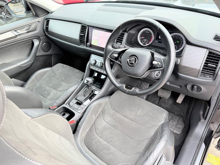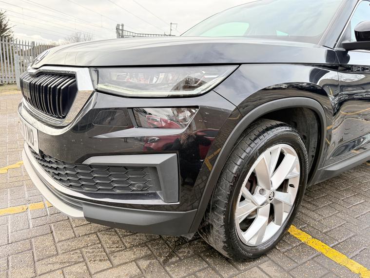 2 KEYS, ULEZ FREE, FRESH SERVICE, TOTAL OF 4 SERVICES (3 MAIN DEALER SERVICES), MOT DUE 21/09/2026, SATNAV, BLUETOOTH, APPLE CAR PLAY, ANDROID AUTO, CLIMATE CONTROL, PARKING SENSORS, HALF LEATHER TRIM, 7 SEATS, SPARE WHEEL, 19'' ALLOY WHEELSThis 2021 Skoda Kodiaq 1.5 TSI ACT SE L SUV with 7 seats and 5 doors is a reliable SUV with a petrol engine and automatic transmission. With 81600 miles and a MOT expiry date of 21/09/2026, this vehicle is ULEZ compliant, making it suitable for city driving. It includes features such as 12V Power Socket in Boot, Amundsen Satellite Navigation with 8in Touchscreen Display and integrated Wi-Fi, Bluetooth, and DAB Radio. This spacious and efficient SUV is perfect for families or anyone in need of extra seating and storage.