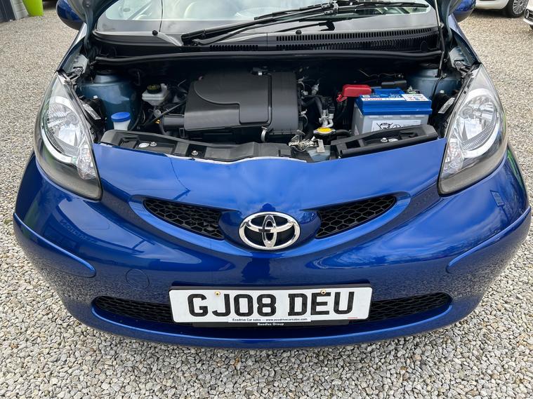 OFFERING THE BEST LOW MILEAGE LOW OWNERSHIP CARS AND CUSTOMER SERVICE IN THE AREA1 OWNER FROM NEWJUST 27, 000 MILES WITH SERVICE HISTORY..LAST SERVICE AT THE TOYOTA MAIN DEALER AT 27, 000 MILES£20 ROAD TAX..SUPERB EXAMPLE OF AN AYGO BLUE EDITIONA NEW MOT AND OUR OWN NO QUIBBLE WARRANTY INCLUDEDHPI CLEAR..JUST VALETED..PX WELCOMEALL OUR CARS COME WITH 2 KEYS,