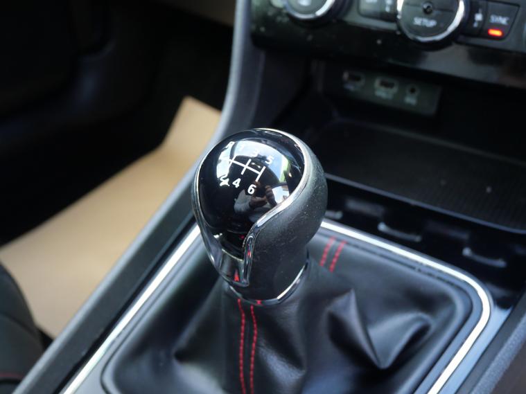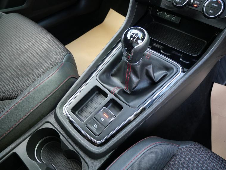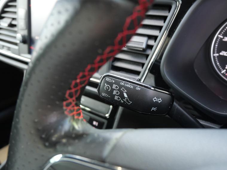 - steering wheel - flat-bottomed perforated leather with red stitching and fr logo