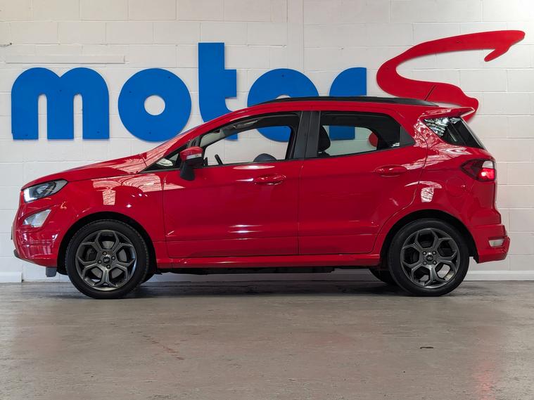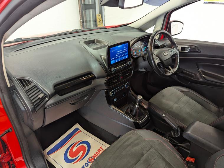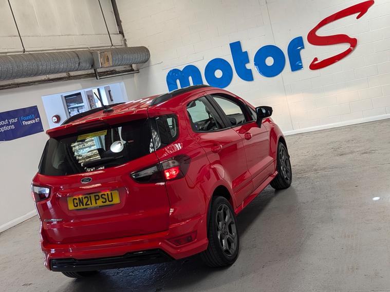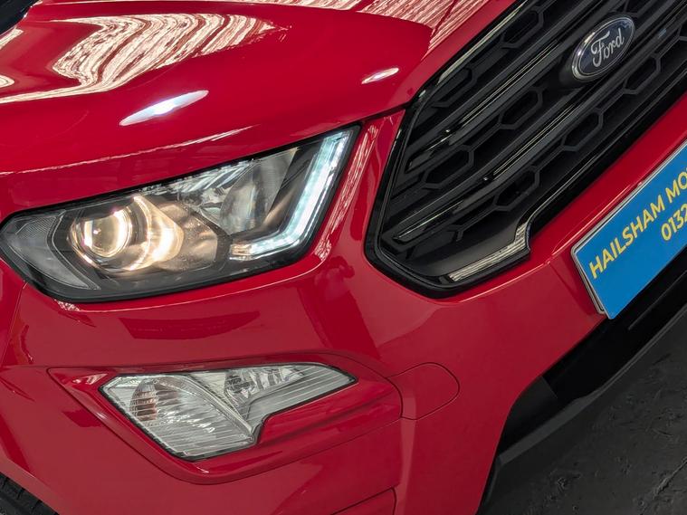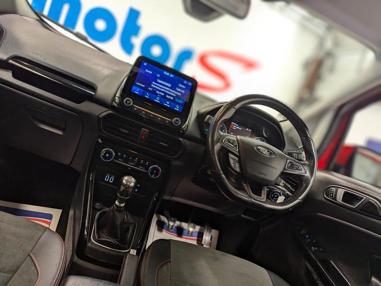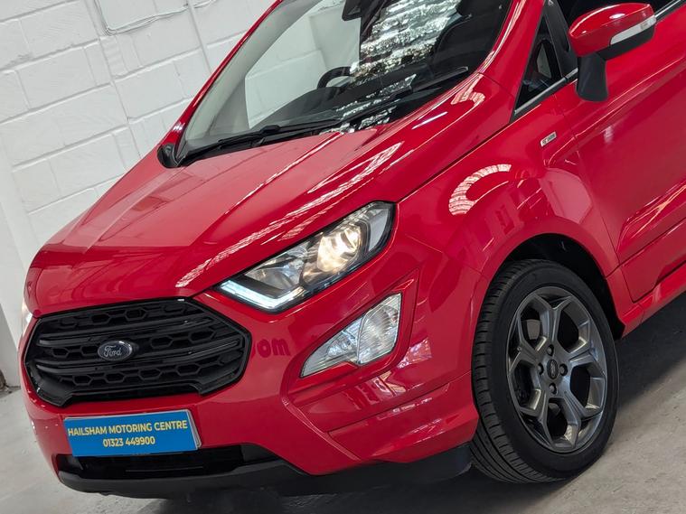 2YR PARTS & LABOUR WARRANTY. Hampden Park Motoring Centre are pleased to be offering this ULEZ compliant 2021 Ford Ecosport 1.0 EcoBoost 125 ST-Line 5dr hatchback for sale, with ONLY ONE OWNER FROM NEW and 66, 700 miles. This car comes with FULL MAIN DEALER SERVICE HISTORY. The car will leave with, an interim service, a new MOT and a PDI. Finished in Race red with black cloth trim.The new look is perhaps the most obvious change, and clearly designed to reflect Ford's other SUVs, the Kuga and Edge. The front end is dominated by a new grille, angular headlights incorporating LED daytime running lights, and a bonnet with a central bulge. At the same time, the rear bumper and tail lights have also been revised.Inside, the Ecosport has what Ford says are easier-to-use controls and soft-touch materials, as well as a new centre console similar to the one in the new Fiesta, with an 8.0-inch touch-screen and interior lighting that can be set to one of seven colours. On top of that, the boot also features a new height-adjustable floor that can be raised to hide items underneath, or lowered to increase the overall luggage capacity.New technology has been a major focus in the new Ecosport, and the Sync 3 infotainment system is compatible with Apple CarPlay and Android Auto.Last, but not least, the Ecosport also has better safety features, with twin front airbags, a driver knee airbag, and new side and curtain airbags.**WHY BUY FROM US** **Established In 1980****24 Month Warranty On All Cars Over £2995, & Those Not Covered By A Manufactures Warranty** ** All Our Cars Are Hpi Clear So You Can Buy With Confidence****Competitive Finance Rates Subject To Status****Multi Branches****Open 7 Days a Week Inc Bank Holidays****Monday - Friday - 8.30am to 6pm****Saturday - 9.00am to 5pm****Sunday - 10am to 4pm****Bank holidays 10am to 4pm**To see more pictures and a walk around video please click on https:/ dealer's website Please call to arrange viewing and a test drive on 01323300238.Here at Hampden Park Motoring Centre, we have up to 50 carson show, also at our Hailsham branch we have up to 50 further cars available for viewing, please call 01323300238 for more info. For more information on our Ecosport please see the benefits below as stated,