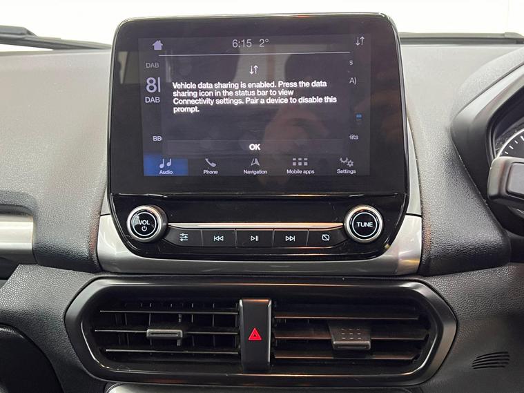Discover this 2019 Ford EcoSport Zetec, a stylish and practical choice for your next vehicle. This particular model boasts a 1.0 litre petrol engine and meets Euro 6 emissions standards, making it a conscientious option. Inside, you'll find the user friendly Ford SYNC 2.5 system, complete with an 8 inch touchscreen that seamlessly integrates with Android Auto and Apple CarPlay, alongside Bluetooth connectivity for all your devices. Comfort is also assured with manual air conditioning, ensuring a pleasant cabin temperature whatever the weather.This Ford EcoSport offers an impressive highlight of 49 miles per gallon, demonstrating its efficiency and cost effectiveness for everyday driving. Furthermore, its low CO2 emissions indicate a more environmentally friendly performance compared to many other vehicles in its class. These highlights, combined with its well equipped Zetec trim, make this 2019 EcoSport a compelling proposition for those seeking a reliable and economical compact SUV.To add to your peace of mind, we offer a 3-month warranty, 12 months of AA Breakdown Cover, and a minimum 6 months of both MOT and service. Your satisfaction and the longevity of your investment are our top priorities.Explore financing options by contacting us at 02030183479. The financing package includes a 12-month AA Breakdown Cover, and while a minimum 6 months MOT is provided (though not applicable to all vehicles), please be aware that an admin charge may apply.Our commitment to customer satisfaction extends to flexible viewing hours until late, allowing you ample time to inspect and appreciate this vehicle. Additionally, we provide warranty and delivery options to cater to your preferences. If you have a vehicle for exchange, we are open to considering it.To ensure transparency and clarity, we encourage customers to verify the car's specifications, advert description, and mileage with our salesperson before finalizing the purchase. This ensures that your experience exceeds expectations, making it a truly enjoyable and worry-free journey.