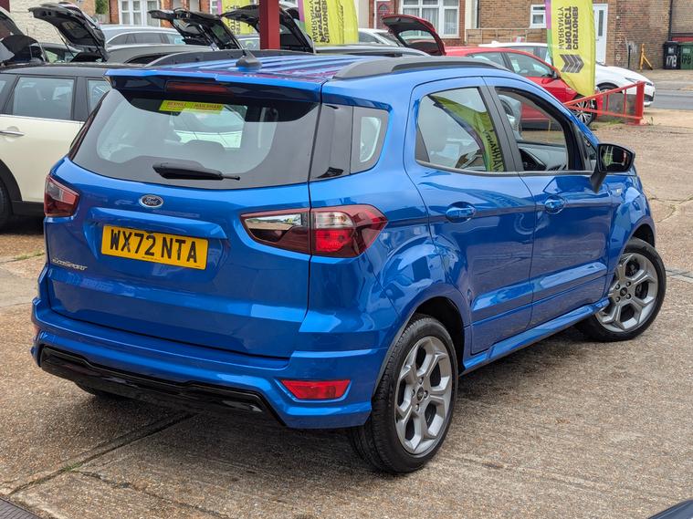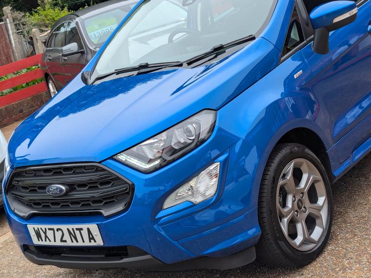 24 MONTH PARTS & LABOUR PEACE OF MIND NATIONAL WARRANTY INCLUDED IN THE PRICE. Hampden Park Motoring Centre is pleased to be offering this ULEZ compliant 2022 Ford Eco sport 1.0 Eco Boost 125 ST-Line 5dr hatchback for sale, with ONLY ONE OWNER FROM NEW and 44, 100 miles. This car comes with FULL-SERVICE HISTORY. The car will leave with an interim service, new MOT and a PDI. Finished in metallic Desert Island Blue with charcoal Alcantara sports trim which adds a touch of sophistication. **WHY BUY FROM US****Established In 1980****24 Month Warranty On All Cars Over £4500, & Those Not Covered By A Manufactures Warranty** ** All Our Cars Are Hpi Clear So You Can Buy With Confidence****Competitive Finance Rates Subject To Status****Multi Branches****Open 7 Days a Week Inc Bank Holidays****Monday - Friday - 8.30am to 6pm****Saturday - 9.00am to 5pm****Sunday - 10am to 4pm****Bank holidays 10am to 4pm**For more pictures and a walk around video please go to https:/ dealer's website call to arrange viewing and a test drive on 01323300259.Here at Hampden Park Motoring Centre, we have up to 50 cars on show, also at our Hailsham branch we have up to 50 further cars available for viewing, please call 01323300259 for more info.For more information on our Eco sport please see the benefits below as stated,