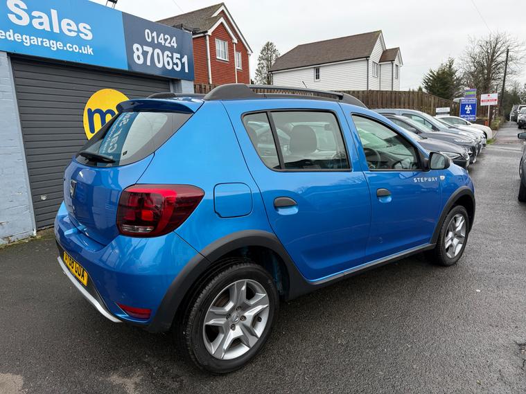 This 2018 Dacia Sandero Stepway 0.9 TCe Comfort Hatchback with 42066 miles on the clock is a reliable and efficient choice for anyone in need of a practical vehicle. With 5 seats and 5 doors, it offers ample space for passengers and cargo, making it suitable for daily commutes and family outings. Powered by a petrol engine, this Euro 6 (s/s) compliant vehicle is also ULEZ compliant, providing peace of mind for city driving. This comes with a new MOT, ensuring its roadworthiness for years to come. The Azurite Blue exterior is complemented by a rear parking camera, making parking and reversing a breeze. Inside, the 12V power socket by the gear lever and for rear passengers, as well as an AUX input, provide convenience and connectivity for modern lifestyles. This hatchback combines practicality with style, making it an attractive option for those in the market for a versatile and economical car.,