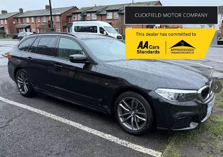 Cuckfield Motor Company are delighted to offer for sale this well presented 2 Owner, BMW 520D M-Sport- Finished in Black Sapphire with Black Leather, this car has BMW Service History with recorded visits at 8936, 22212, 25250, 33941 and 45033 miles. Specification includes Pro Navigation---Rear View Camera---Front & Rear Parking Sensors---Heated Front Seats---Bluetooth Phone & Audio---DAB Radio---USB---Power Tailgate---Privacy Glass---Climate Control---Paddles Shift Gear Selection---18'' Alloy Wheels---Digital Dashboard---Cruise Control and much more.Every car we offer comes with a comprehensive provenance check certificate, Minimum 6 month warranty and new MOT and service where applicable. All part exchanges welcome.We offer extremely competitive finance packages to help you fund your new car.Cuckfield Motor Company Ltd is a family run business FCA approved dealer established for over 20 years, With 30 years experience in the motor trade.We are located in the village of Cuckfield just off the A23, 15 minutes from Gatwick airport and only 5 minutes from Haywards Heath train station.Please contact us via phone/email to view this car today. email us on: dealer's website