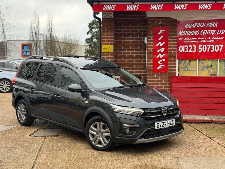 **24 MONTHS PARTS & LABOUR PEACE OF MIND NATIONAL WARRANTY INCLUDED IN THE PRICE**Hampden Park Motoring Centre is pleased to be offering this ULEZ compliant 2022 Dacia Jogger 1.0 TCe Comfort MPVfor sale, with ONLY ONE OWNER FROM NEW and 31, 600 miles. This car comes with COMPREHENSIVE SERVICE HISTORY. The car will leave with an interim service, a new MOT and a PDI. Finished in Slate grey with dark grey comfort trim.Part crossover and part MPV, Dacia's new model has a versatile interior that can be set to carry the family or stripped out to make a sort-of van. It's brilliantly functional and great value.Everything is manually operated - seats included - but it feels tough and well put together. Sure, there are exposed bits of metal where higher-spec cars would have trim covers, but the Jogger is lighter for it., It's hones, it's brill.The turbocharged 1.0-litre engine is a lot punchier than you'd expect, the six-speed manual gearbox is tight and easy to use, and the steering is fingertip-light. In fact, all control weighting is light, and the ride is squidgy. Add in brilliantly comfy seats, and you could munch miles in a Jogger, no problem.Practicality is the Jogger's strongest point. It's a proper seven-seater, with a back pair of chairs that are just about big enough for adults but are clearly intended for kids. Take them out (they can be fully removed with the press of a couple of releases) and you have yourself a five-seater with an SUV-sized boot. Fold down the middle bench and you have a van-like load space. Oh, and those roof racks are standard-fitment, plus the Jogger can tow a braked trailer of 1, 200kg.**WHY BUYFROM US****Established In 1980****24 Month Warranty OnAll Cars Over £4500, &Those Not Covered By A Manufactures Warranty****All Our Cars AreHpi ClearSo You Can Buy WithConfidence****Competitive FinanceRates Subject To Status****Multi Branches****Open 7 Days a Week Inc Bank Holidays****Monday - Friday - 8.30amto 6pm****Saturday - 9.00am to 5pm****Sunday - 10am to 4pm****Bank holidays 10am to 4pm**For more pictures and a walk around videopleasego to https:/ dealer's website call to arrange viewing and a test drive on 01323300238.Here at Hampden Park Motoring Centre, we have up to 50 carson show, also at our Hailsham branch we have up to 50 further cars available for viewing, please call 01323300238 for more info.For more information on our Jogger please see the benefits below as stated,