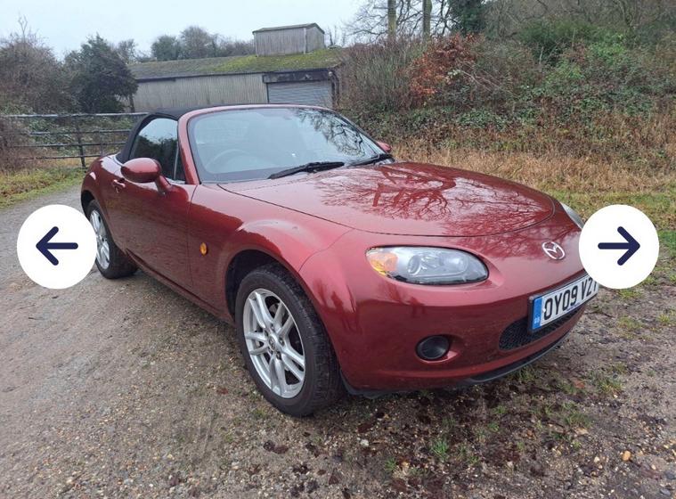 ARRIVING NEXT WEEK THIS BEAUTIFUL 1 PREVIOUS OWNER 2009/09 MAZDA MX5 2.0i ROADSTER WITH OPTION PACK FINISHED IN A LOVELY METALLIC RED WITH UNMARKED BLACK CLOTH INTERIOR WITH ONLY 92, 000 MILES OF WHICH IS LOW MILEAGE FOR ITS YEAR , THIS EXAMPLE HAS A FULL MAZDA SERVICE HISTORY AND NEVER MISSED A SERVICE AND LOOKS AND DRIVES SUPERB AND HIGHLY RECOMMENDED INDEED AO GET IT BOUGHT BEFORE THE SPRING AND READY FOR SOME ROOF DOWN FUN GUYS , WILL COME WITH A NEW MOT AND SERVICE AND 12 MONTHS WARRANTY ALL INCLUDED SO GET THIS RESERVED ASAP TO AVOID DISAPPOINTMENT AS YOU WILL MOST DEFINITELY BUY THIS ONE !!Ran cars and commercials limited