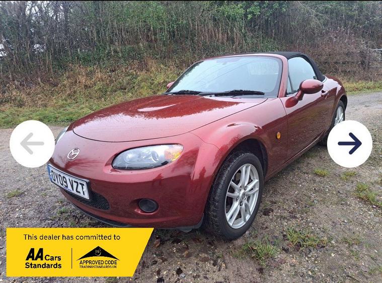JUST ARRIVED THIS BEAUTIFUL 1 PREVIOUS OWNER LOW MILEAGE FOR ITS AGE AND HONESTLY AN IMPECCABLE FULL MAZDA SEVICE HISTORY 2009/09 MAZDA MX5 2.0i ROADSTER WITH OPTION PACK FINISHED IN A LOVELY METALLIC RED WITH UNMARKED BLACK CLOTH INTERIOR WITH ONLY 92, 000 MILES OF WHICH IS LOW MILEAGE FOR ITS YEAR , THIS EXAMPLE HAS A FULL MAZDA SERVICE HISTORY AND NEVER MISSED A SERVICE AND LOOKS AND DRIVES SUPERB AND HIGHLY RECOMMENDED INDEED AO GET IT BOUGHT BEFORE THE SPRING AND READY FOR SOME ROOF DOWN FUN GUYS , WILL COME WITH A NEW MOT AND SERVICE AND 12 MONTHS WARRANTY ALL INCLUDED SO GET THIS RESERVED ASAP TO AVOID DISAPPOINTMENT AS YOU WILL MOST DEFINITELY BUY THIS ONE !!Ran cars and commercials limited