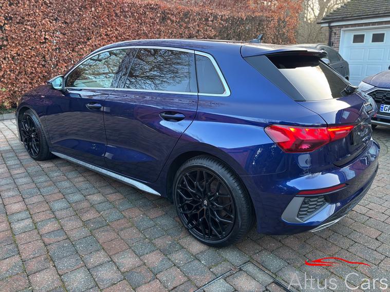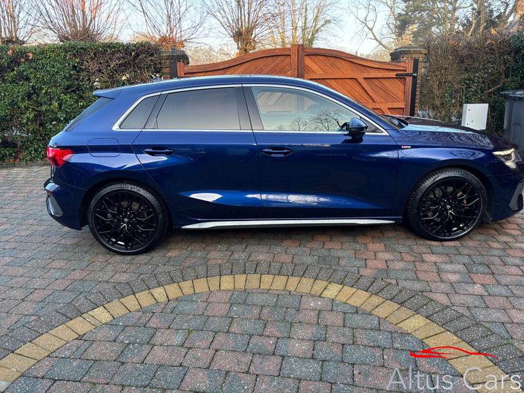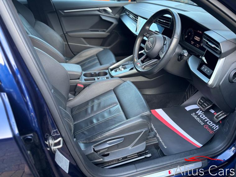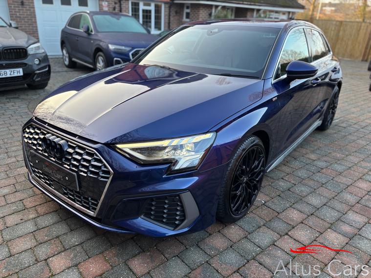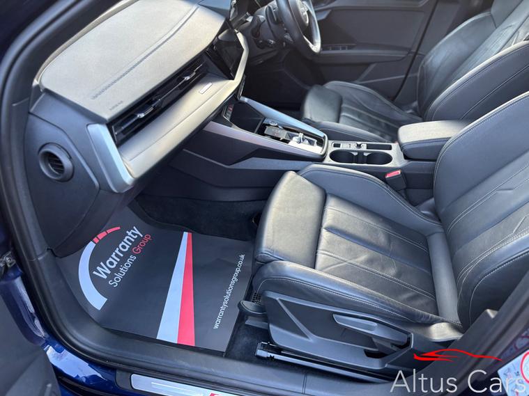 Stunning Navarra Blue 2021 Audi A3 1.5 TFSI 35 S line Sportback 5dr Petrol S Tronic Euro 6 (s/s) (150 ps) 48, 000 miles, Full Audi Service History, 18'' Multi-spoke black alloys, Virtual Cockpit, Full Black Leather interior, Rear parking sensors, Cruise control, Light and rain sensors, Lane departure warning, Sat nav, Audi Smartphone Interface, Audi connect emergency call & service, MMI Radio plus, Sport seats in Twin Leather with S embossing for sport seats, Privacy glass, LED Interior Lighting Pack, DAB digital radio, 3-spoke leather multi-function steering wheel with gear-shift paddles for S tronic transmission, Lane departure warning, Exterior mirrors electrically adjustable, heated and folding, automatically dimming on both sides, MMI Navigation Plus with high-resolution 10.1'' touch screen, colour display, Rear parking sensors, LED headlights with LED rear lights and dynamic rear indicators, Audi pre sense front, Separate daytime running light, Light and rain sensors, Cruise control, LED rear combination light, dynamic turn signal, Dual-zone electronic climate control, We are a family business and pride ourselves on supplying premium quality used cars. We will provide 6 months comprehensive WSG Platinum Warranty with Current Market Value claim limit, Enhanced labour rate plus Roadside assistance with this Audi plus a full Motorcheck provenance report for your complete peace of mind. Optional 12 months AA cover available plus we can offer 5 day driveaway insurance if needed. P/ex welcome.