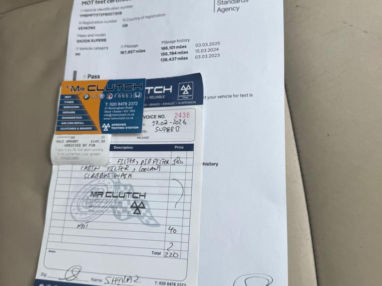 This Skoda Superb TDI Elegance from 2014 boasts a clear vehicle history, offering you peace of mind. Powered by a robust 2.0 litre diesel engine and featuring a capable four wheel drive system, this automatic transmission model is presented in the well appointed Elegance trim. You'll appreciate the convenience of rear parking sensors with parking assistance, dual zone climate control for personalised comfort, and the sophisticated touch of Bi-Xenon headlights. The driver's seat also benefits from a memory function, ensuring your preferred position is always readily available, complemented by automatic headlights that activate the tunnel light feature.Experience impressive performance with this Superb, achieving 0-60mph in a swift 8.5 seconds, demonstrating its strong acceleration compared to other vehicles in its class. Beyond its dynamic capabilities, this Skoda Superb offers exceptionally generous boot space, making it a practical choice for families, adventurers, or anyone needing ample storage. The combination of its refined features, powerful yet efficient diesel engine, and the added security of a clear vehicle history makes this Superb a compelling option.SERVICE HISTORY IS FROM 2019'to 2026