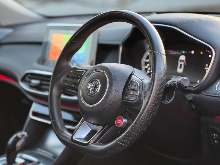 This 2020 MG HS T GDI Exclusive is a standout choice, boasting exceptionally low mileage for its age with only 29260 miles covered and having had just one owner. This well maintained example is finished in striking Red and Black leather upholstery, offering a premium feel. Under the bonnet, it features a 1.5 litre petrol engine, meeting Euro 6 emission standards. The Exclusive trim level ensures a host of desirable features, including automatic headlights with Bi-Function LED technology for enhanced visibility, and a fixed panoramic sky roof that floods the cabin with natural light. Stay connected on the go with seamless Bluetooth connectivity.The performance of this MG HS is equally impressive, with a brisk 0 to 60 mph acceleration time of just 9.6 seconds. This figure, combined with its single owner provenance and remarkably low mileage, demonstrates that this particular vehicle offers a superior ownership experience compared to other models of the same age. The combination of its stylish interior, advanced lighting, and enjoyable driving dynamics makes this MG HS T GDI Exclusive a compelling option for anyone seeking a well equipped and carefully looked after family car.