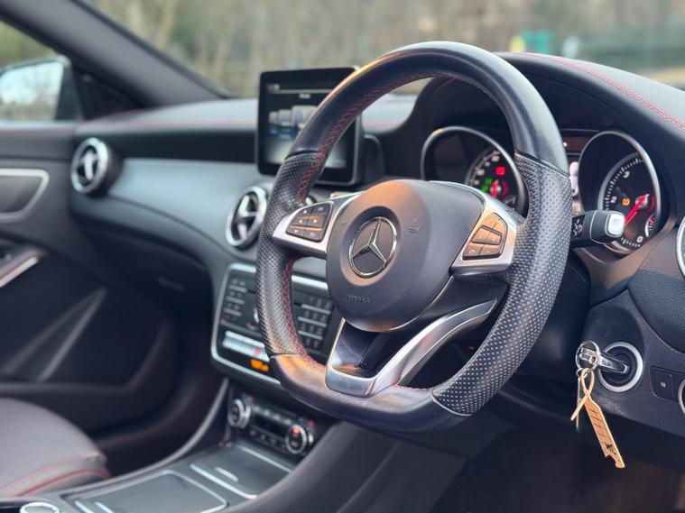 This 2017 Mercedes Benz CLA220d AMG Line boasts a full service history and has had only two owners, ensuring excellent provenance. This stylish coupe features the desirable AMG Line trim and an AMG Exclusive Package, which includes heated front seats for added comfort. You'll also find a panoramic sliding sunroof, perfect for enjoying the open air, and practical additions like a rear armrest with a twin cup holder and a through-loading facility. The striking 18 inch AMG multi-spoke alloy wheels in gloss black with a high sheen finish complement its sporty aesthetic.This Euro 6 compliant diesel model offers impressive fuel economy, achieving a remarkable 69 miles per gallon, and benefits from a low CO2 emission rating, making it an economical choice. Its low insurance group further adds to its appeal as a cost effective vehicle. A 12 month MOT will be provided on purchase, and the vehicle comes with a 3 month warranty for your peace of mind, alongside a clear vehicle history check.