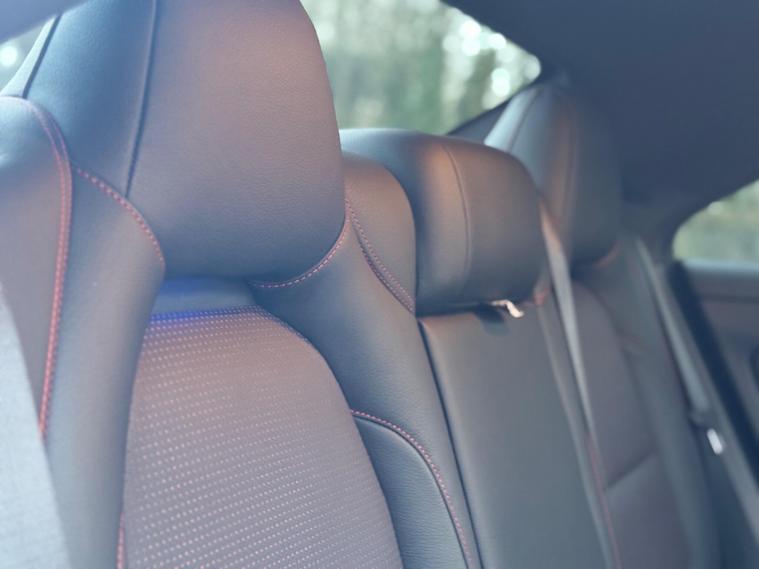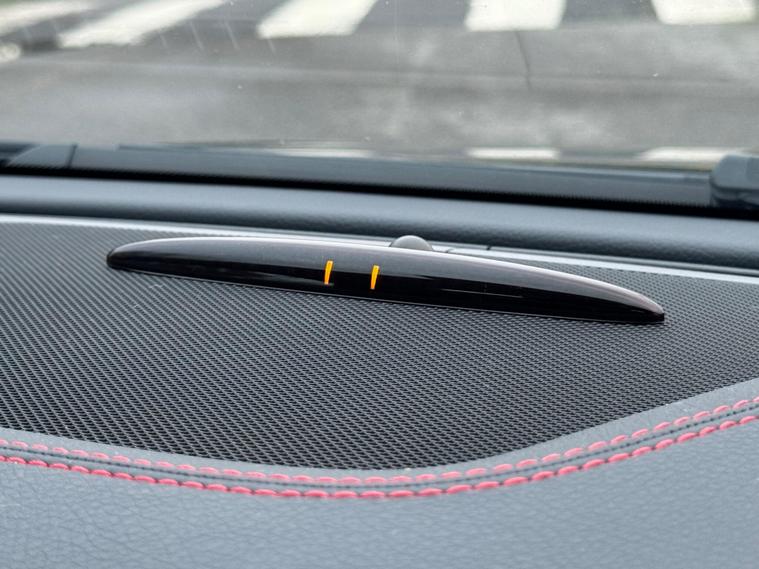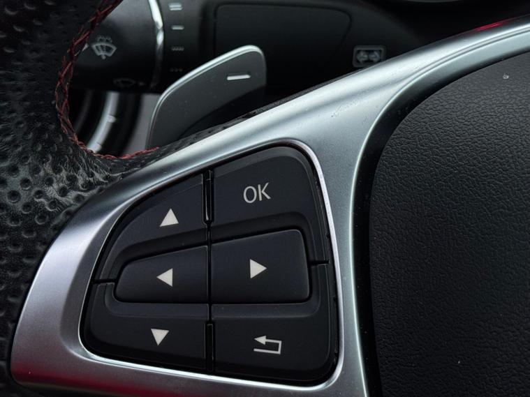 - steering wheel - 3-spoke 12-button multi-function sports steering wheel in leather with perforated in grip area - flattened bottom section and red contrast stitching