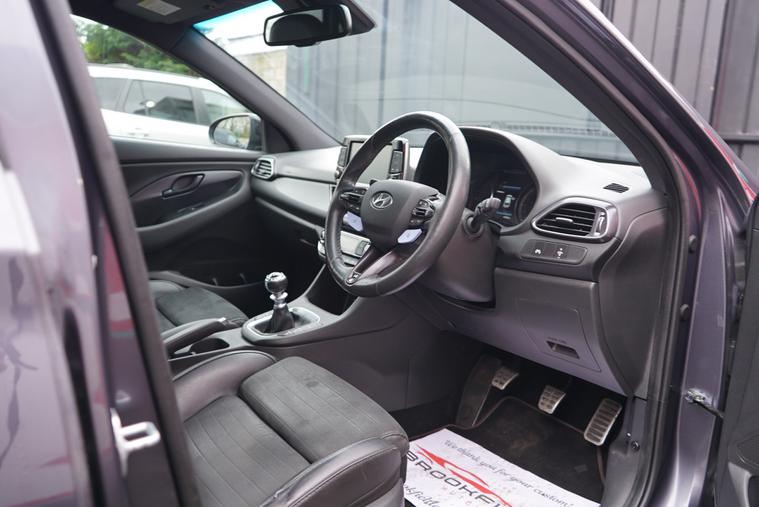 Brookfield Autos presents this Hyundai i30 T-GDi N Performance with low mileage of just 42800 miles for its 2018 registration, offers outstanding value. This Euro 6 compliant 2.0L petrol engine model comes with a clear vehicle history check and a full service history, ensuring peace of mind. You'll also benefit from 12 months MOT provided on purchase and a 6 months warranty for added security. Key features include Smart Key with keyless entry and engine start stop button, Heated Seats with Drivers Memory Function, Heated Steering Wheel, Wireless Phone Charger, Reversing Camera, Electric Folding Mirrors, automatic headlights with a dusk sensor, and LED headlights for enhanced visibility.Experience impressive performance with the Hyundai i30 T-GDi N Performance, capable of accelerating from 0-62mph in a swift 6.1 seconds, a highlight that sets it apart from many similar vehicles. Stay connected and comfortable with Android Auto phone integration and climate control featuring an automatic de fog system for the front windscreen. This model also boasts a large boot space, making it a practical choice for everyday use and longer journeys.
